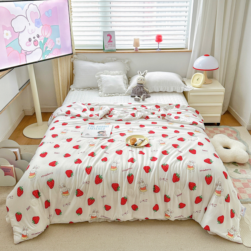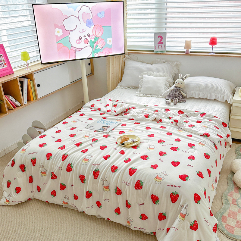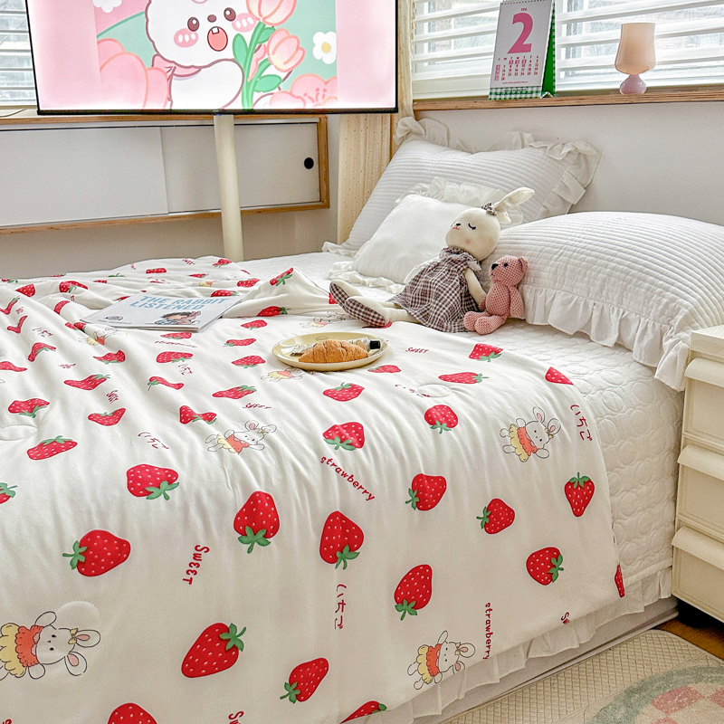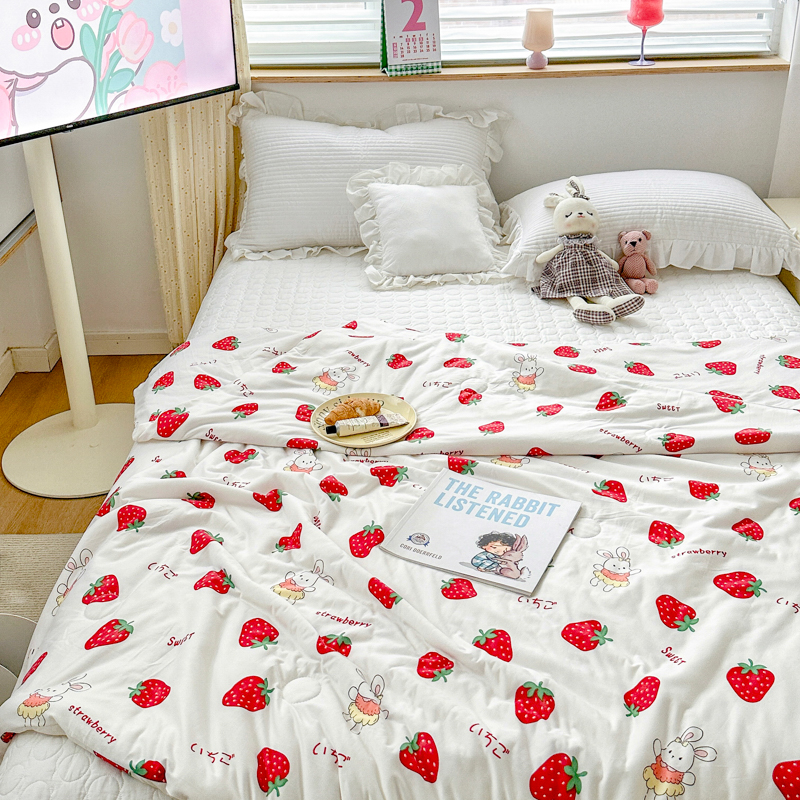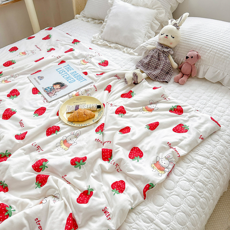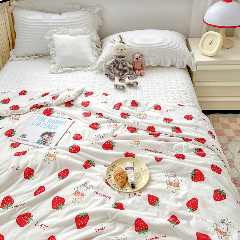 木堇家居 2023新款针织夏被A类大豆针织棉夏被 兔兔草莓
