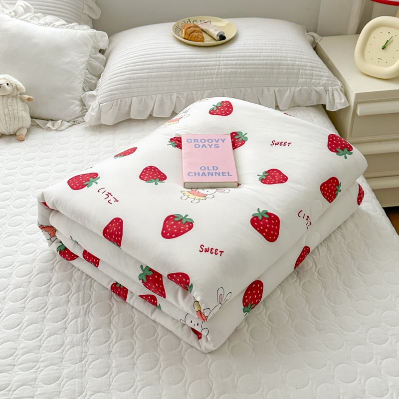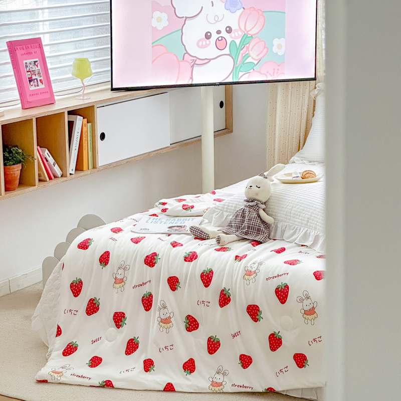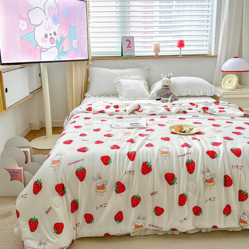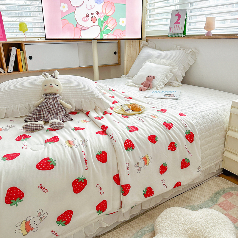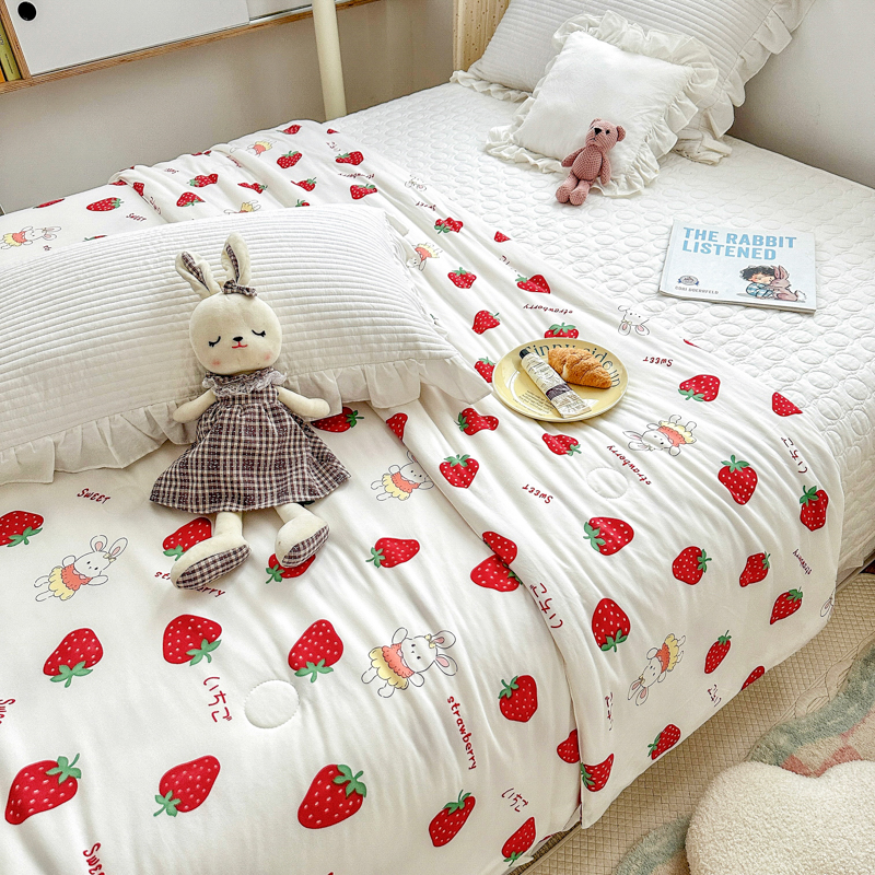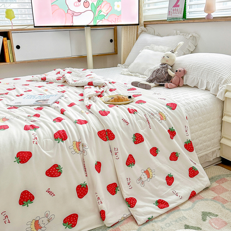 木堇家居 2023新款针织夏被A类大豆针织棉夏被 兔兔草莓