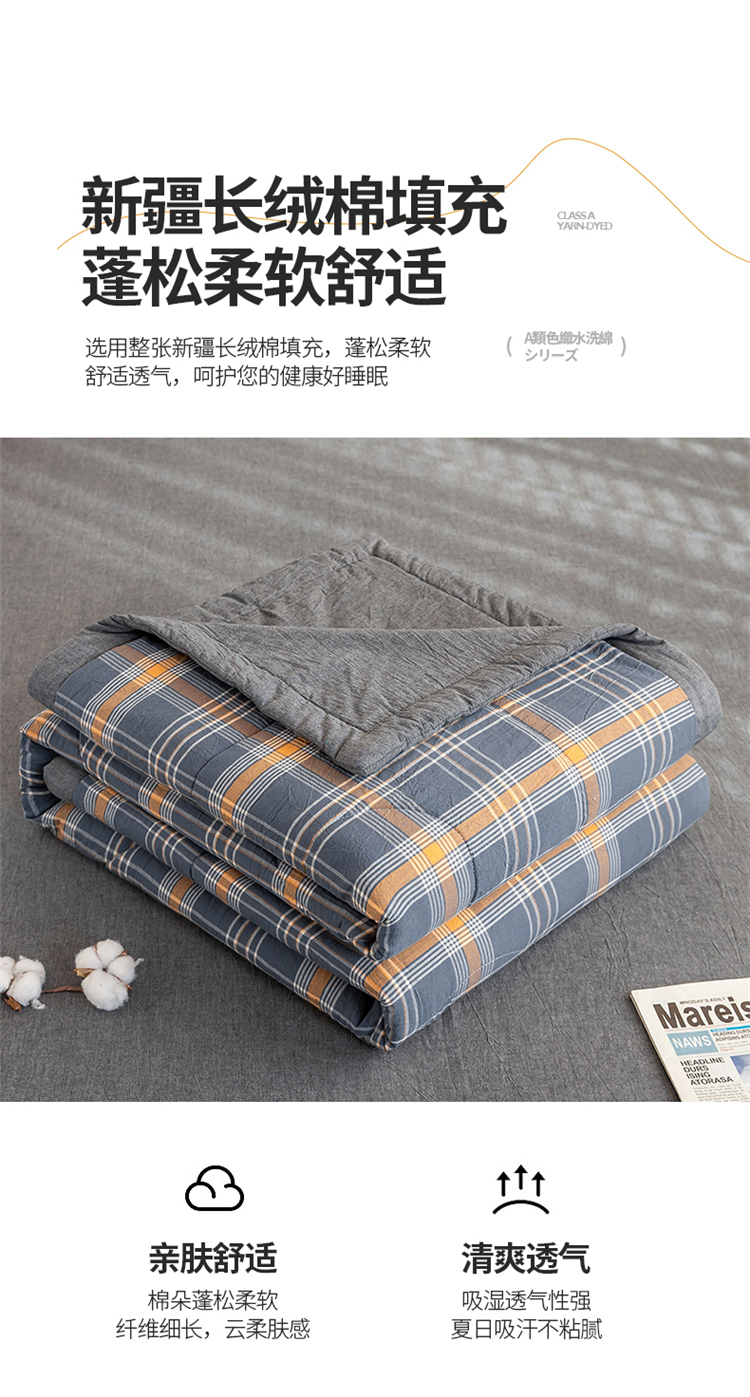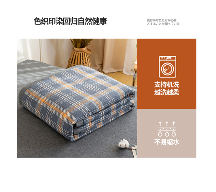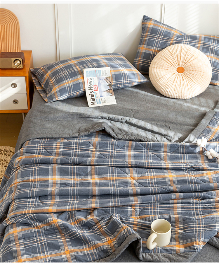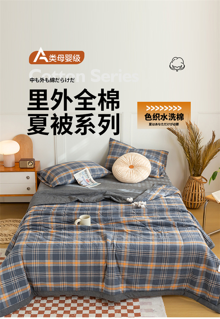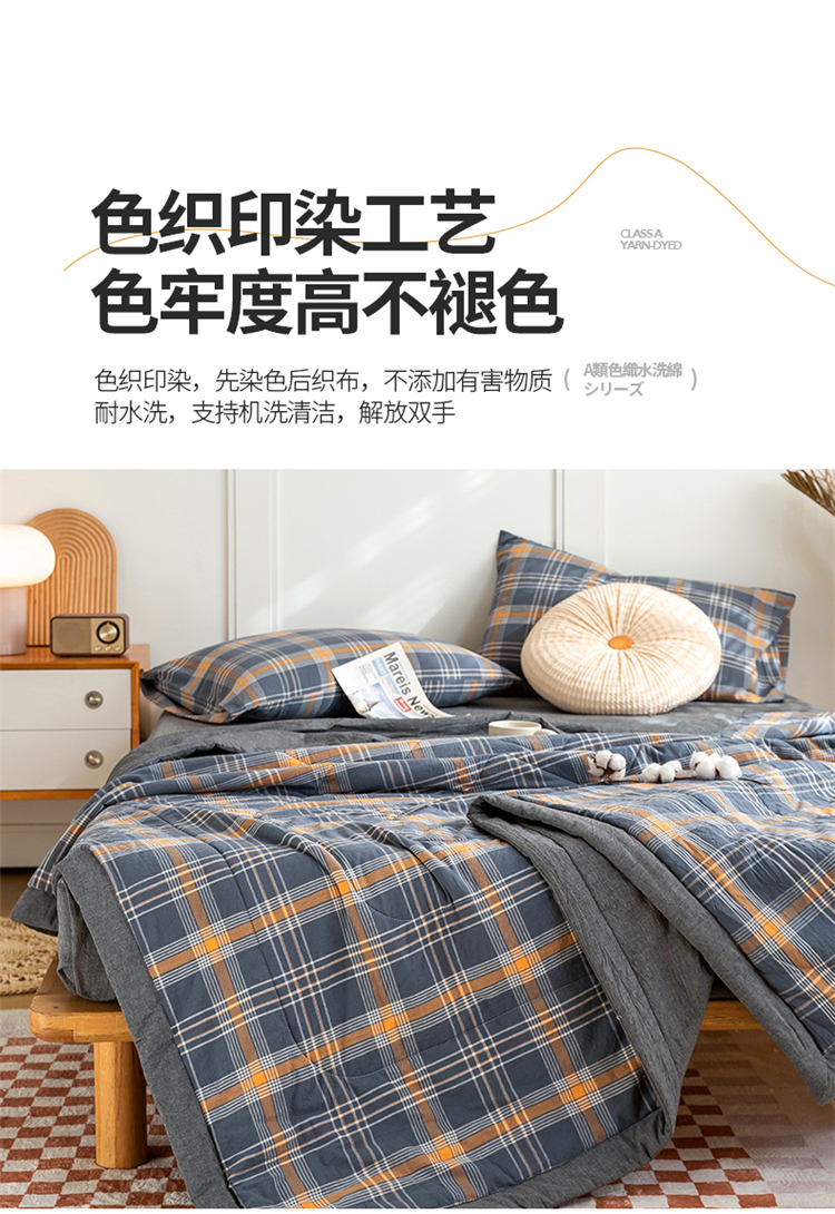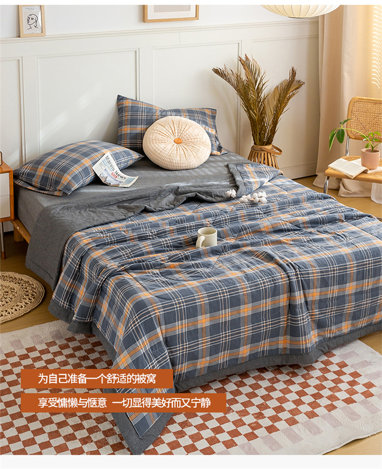 • 91家纺网 家纺一手货源 找家纺 鸣升 新款全棉色织水洗棉棉花夏被(图片2无模特) 灰格桔