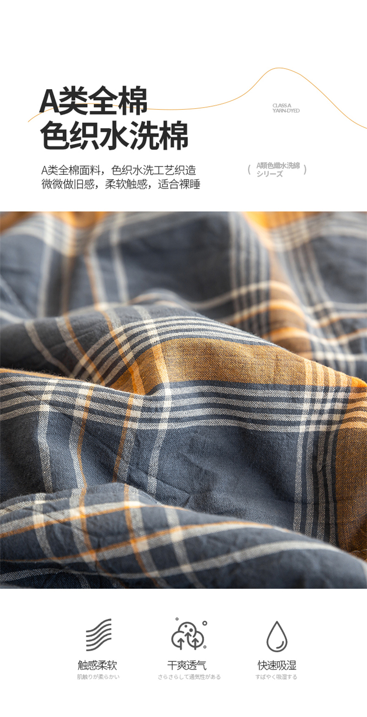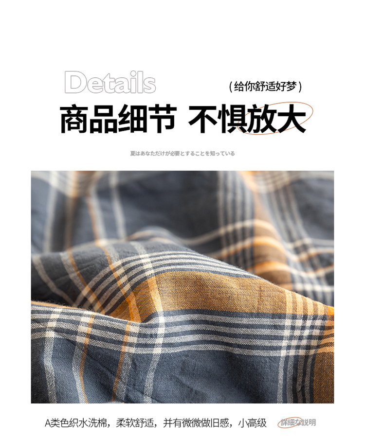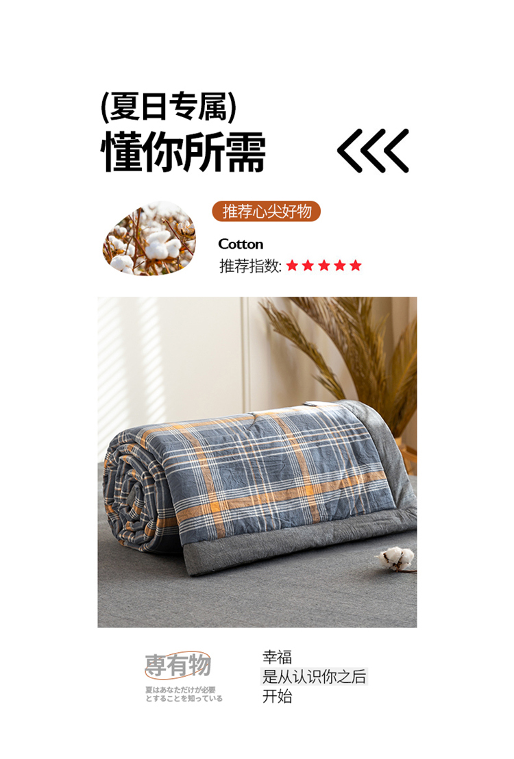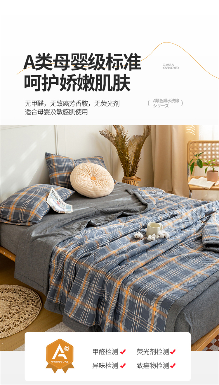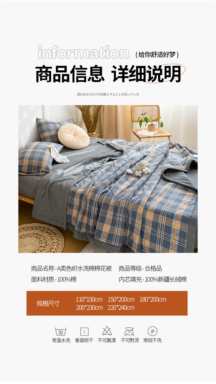 • 91家纺网 家纺一手货源 找家纺 鸣升 新款全棉色织水洗棉棉花夏被(图片2无模特) 灰格桔