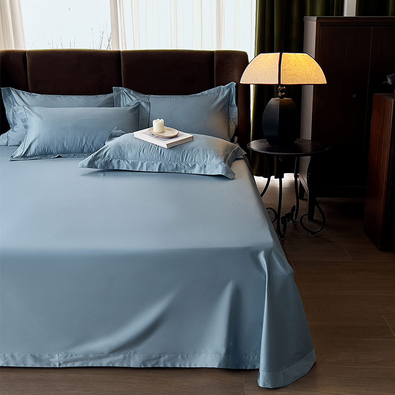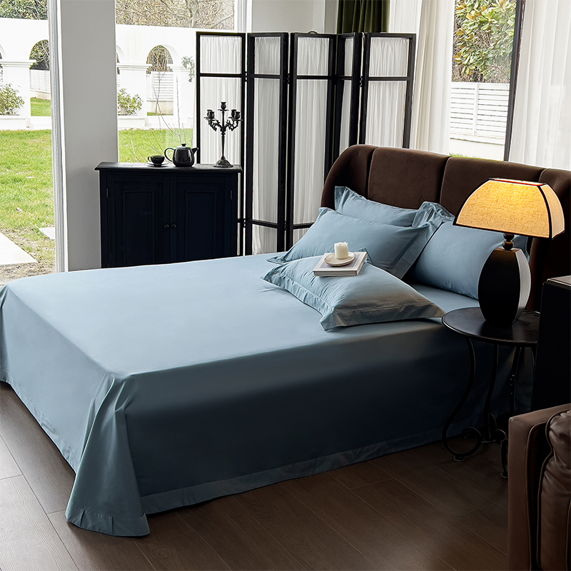 嘉悦50*50S双股长绒棉简约纯色埋绳单品床单邂逅-实拍 邂逅-月光蓝