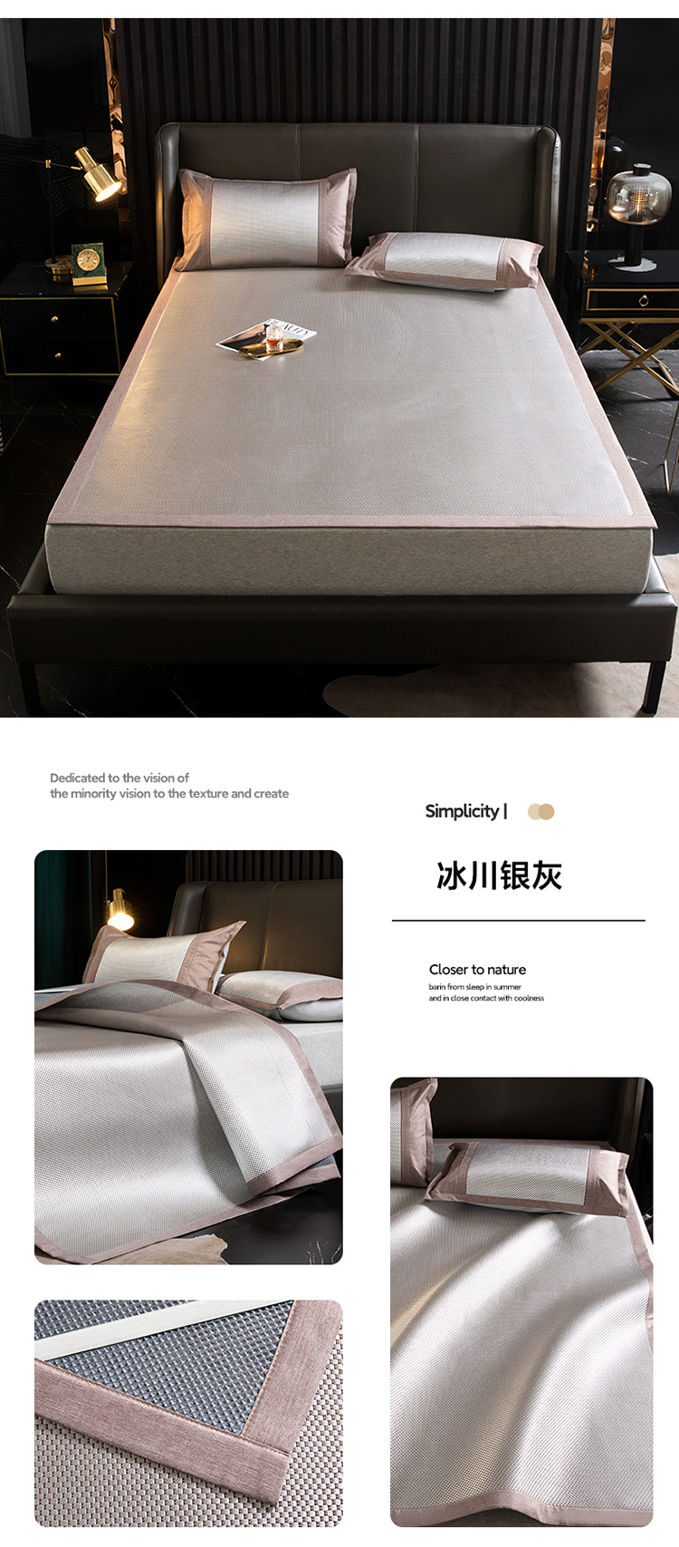 商品名称: 伊被源 2023新款高密度纺织碳光冰藤席 冰川-银灰