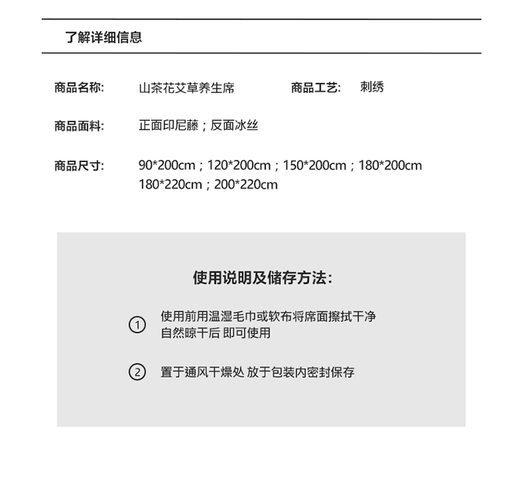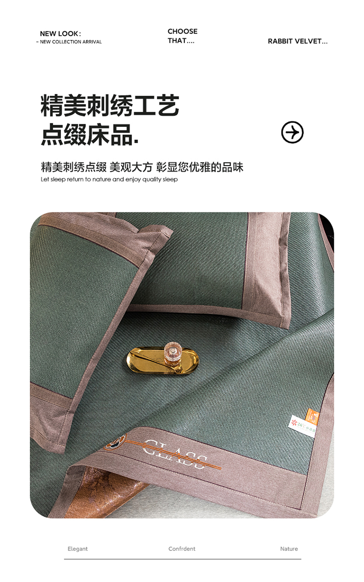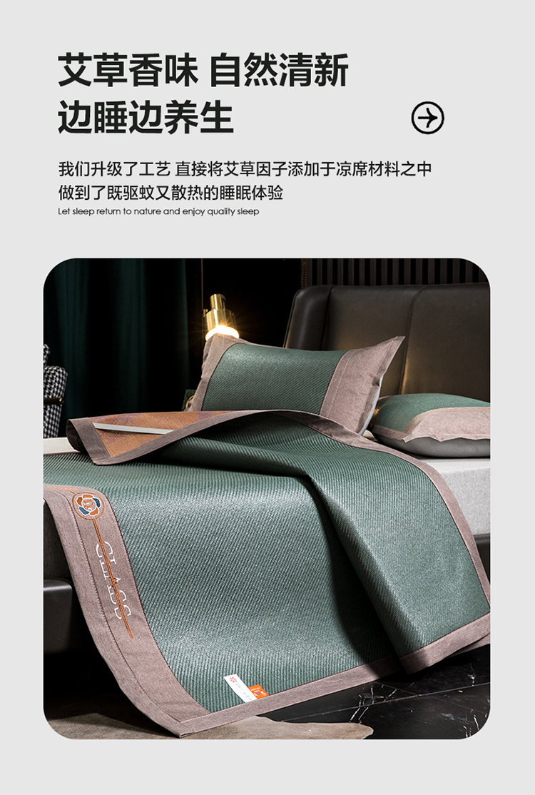 商品名称: 伊被源 2023新款山茶刺绣艾草凉席系列 山茶刺绣艾草叶墨绿
