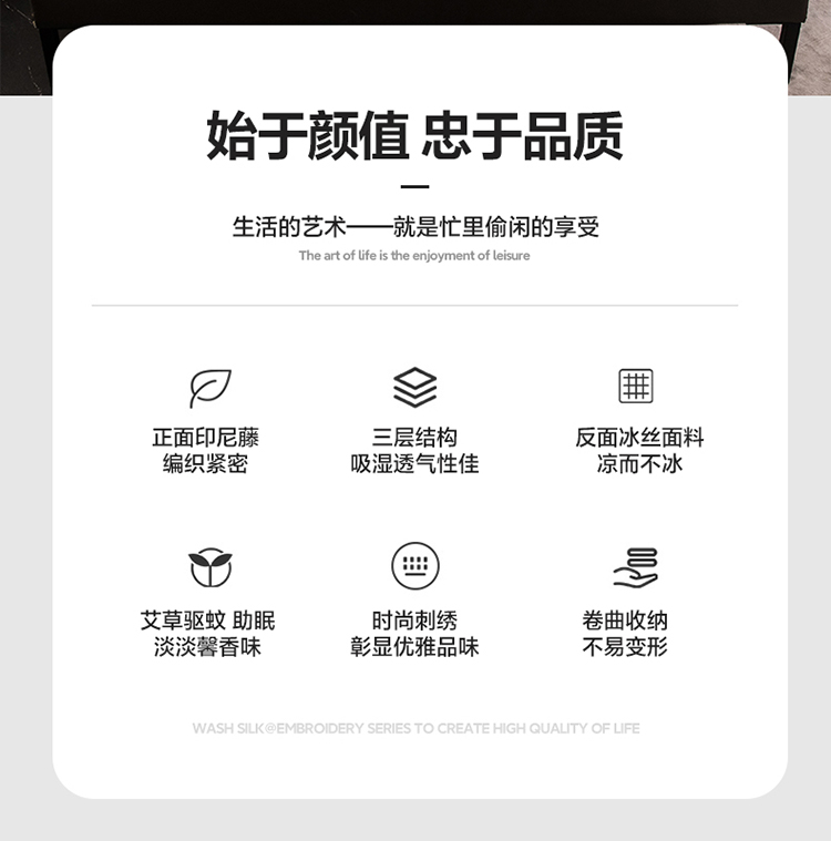 (总)伊被源 2023新款凉感冰藤刺绣软席-冷酷,深邃灰,伽罗色,古绿色,咖啡色