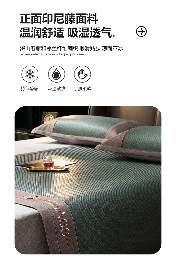 (总)伊被源 2023新款加厚刺绣古藤席三件套-可可西里,可可西里-咖色,可可西里-绿,可可西里-藤黄,可可西里-银灰,可可西里-棕灰