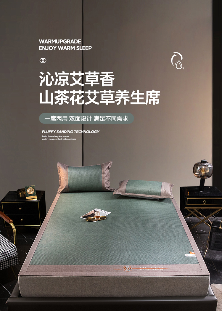 伊被源 2023新款山茶刺绣艾草凉席系列 山茶刺绣艾草叶墨绿