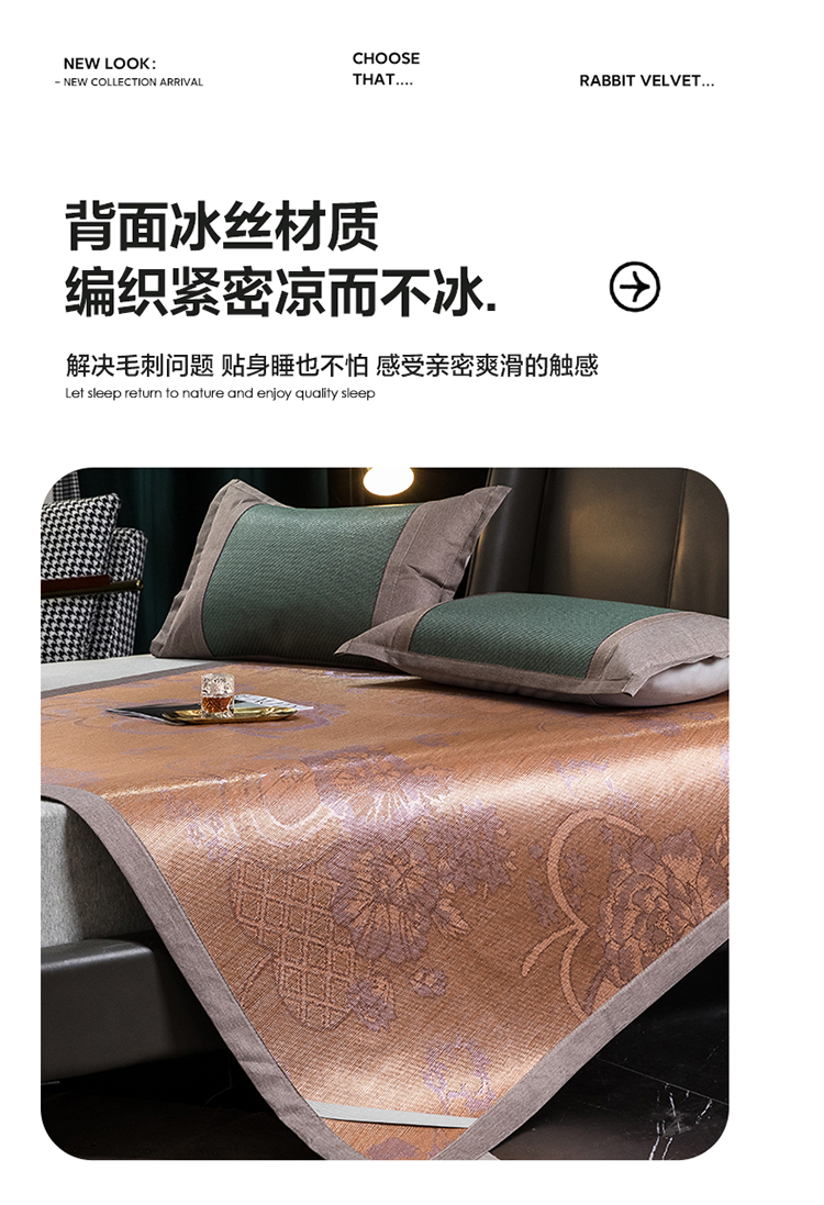 总伊被源2023新款女王款刺绣冰藤席1200D可机洗可折叠冰丝席-戴菲,戴菲 薄荷绿,戴菲 古铜咖,戴菲 香槟金,戴菲 月光银