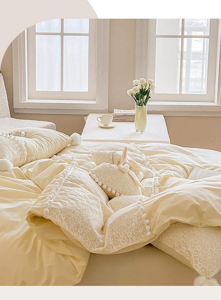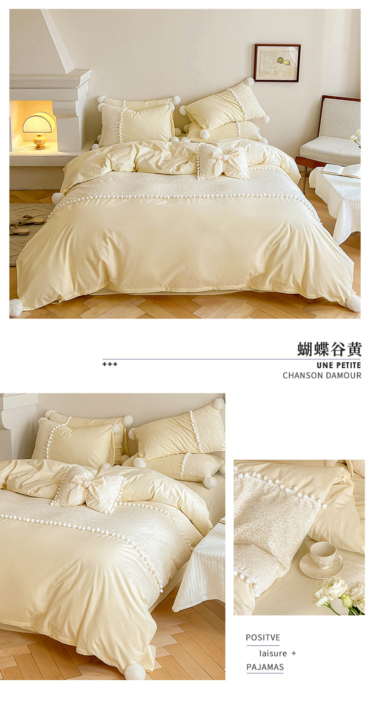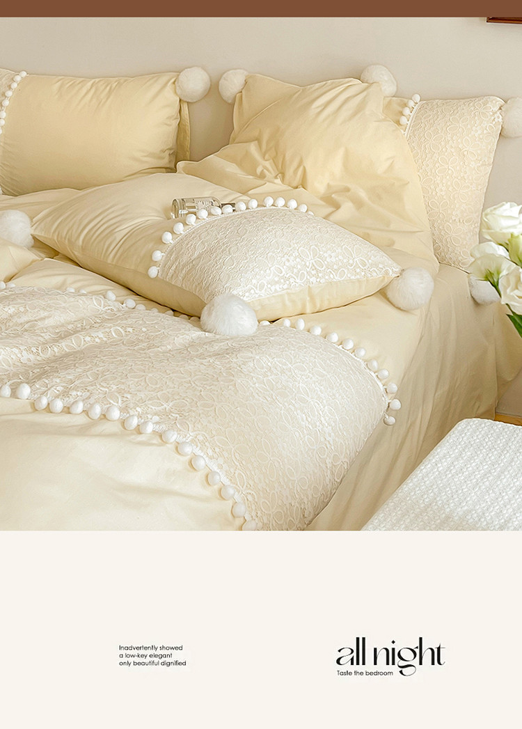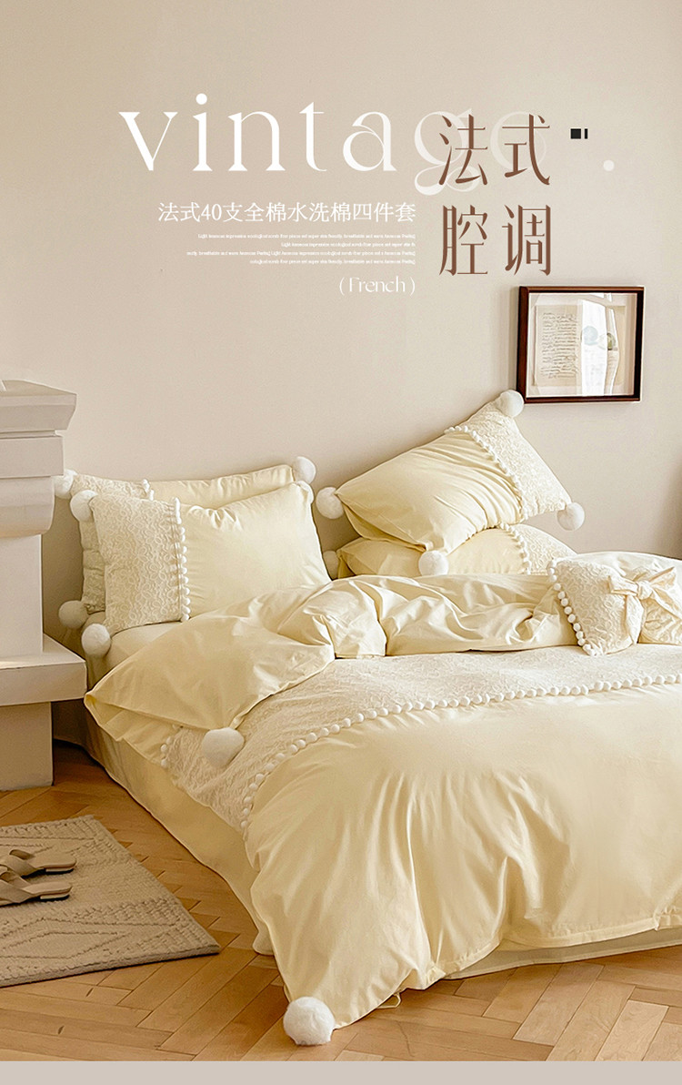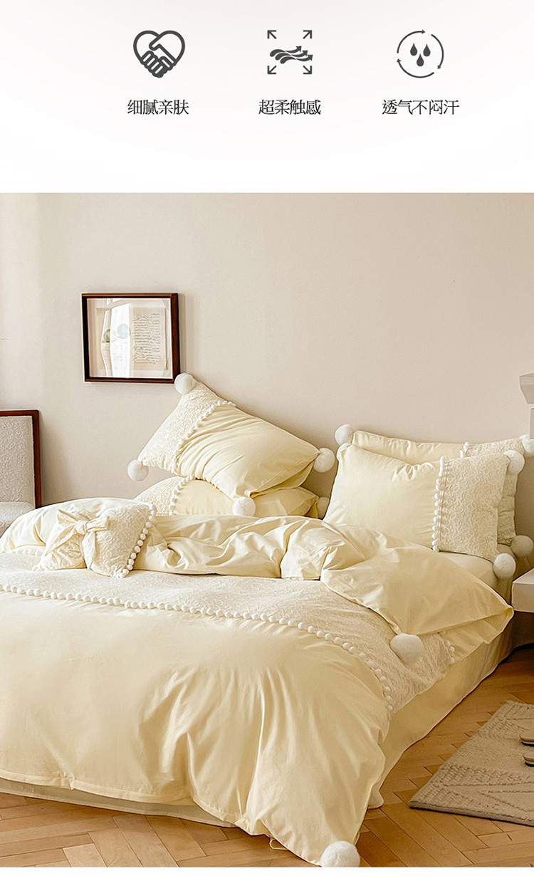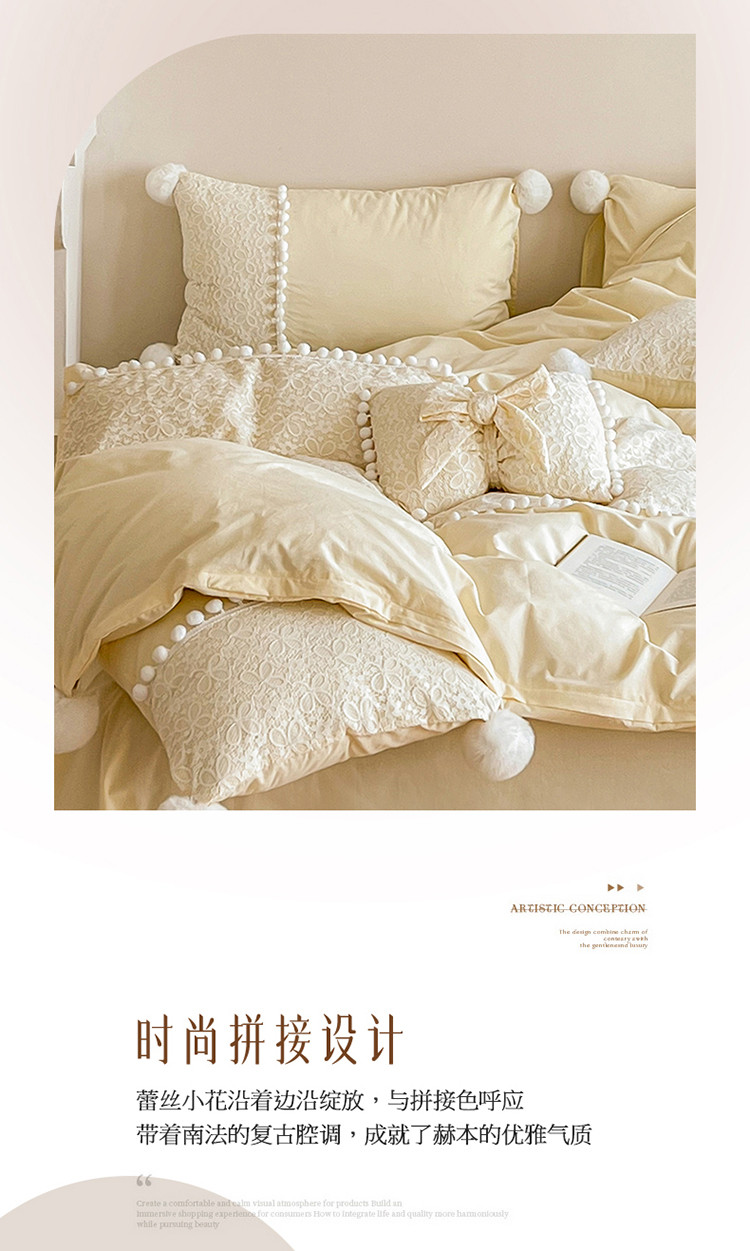 (总)婳庭家居 2025新款60s全棉纯棉MIU系少女法式蕾丝四件套,miu系少女