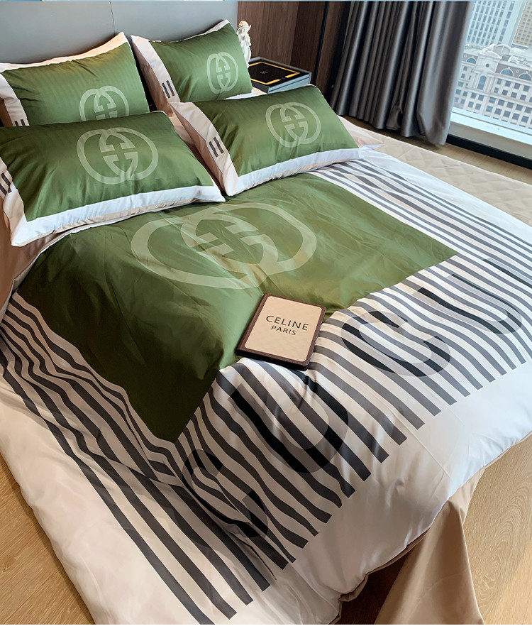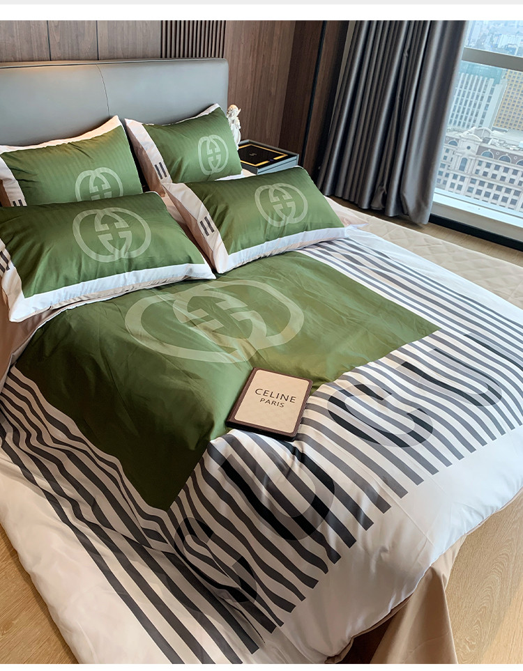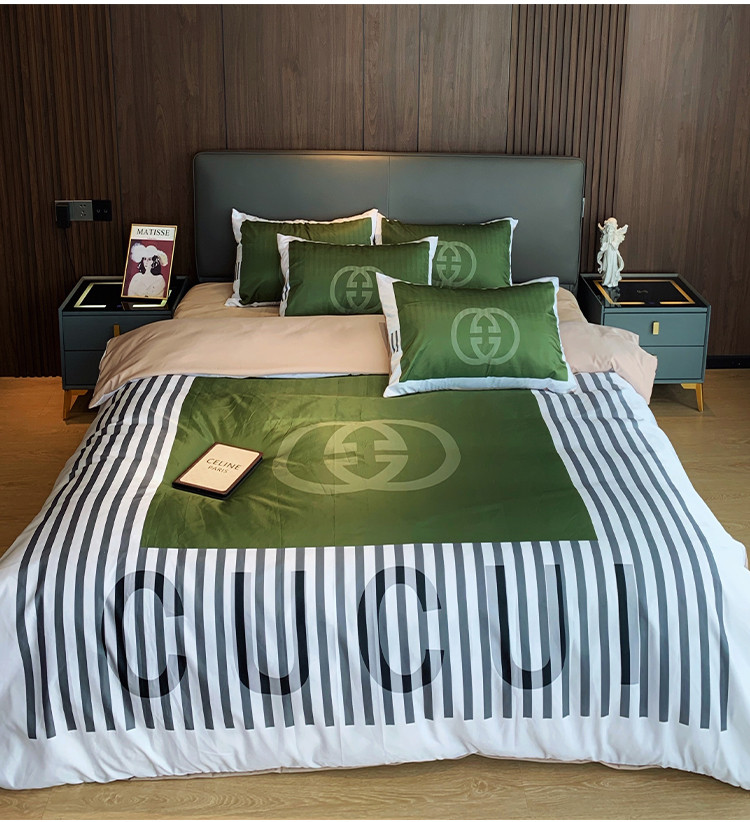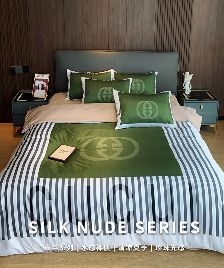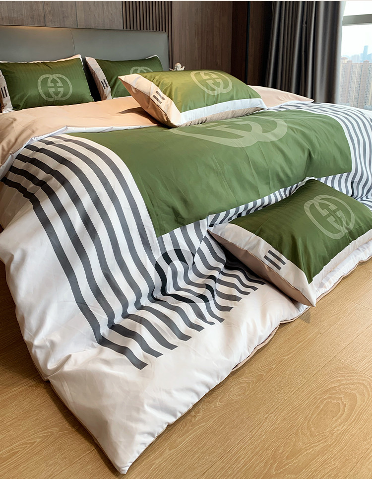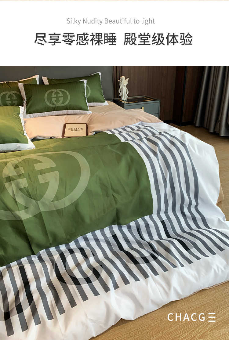 当前位置: 91家纺网 > 商品网购 > 床品套件 > 四件套 > 真丝四件套 > 色鬼布艺 2023新款水洗真丝大牌风四件套 绿色字母