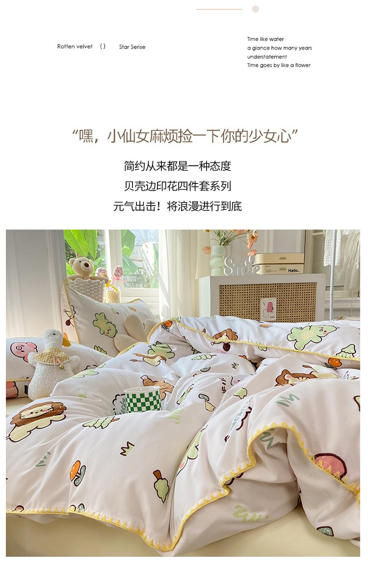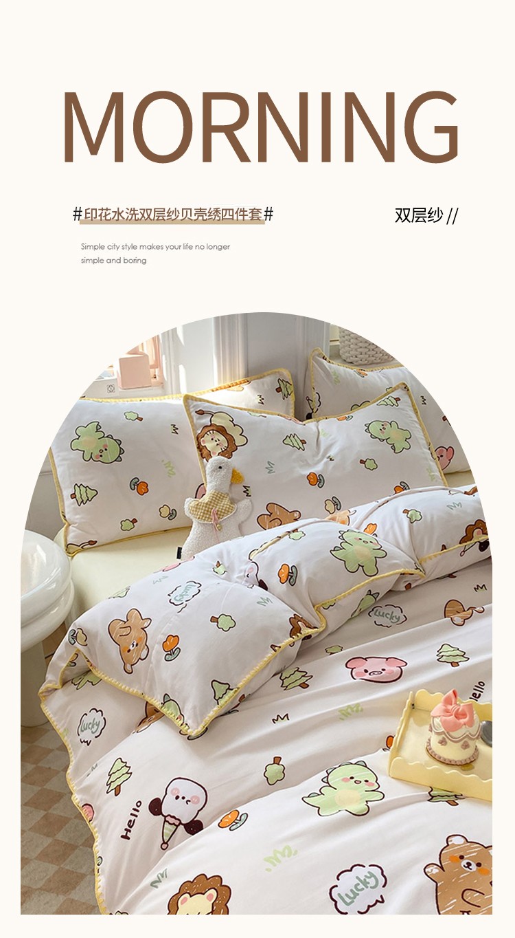 妖妖家纺 2023印花水洗双层纱贝克绣四件套 动物世界
