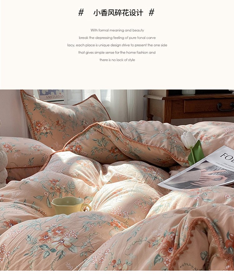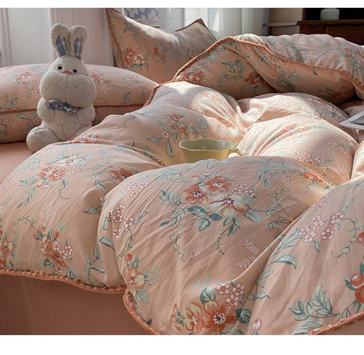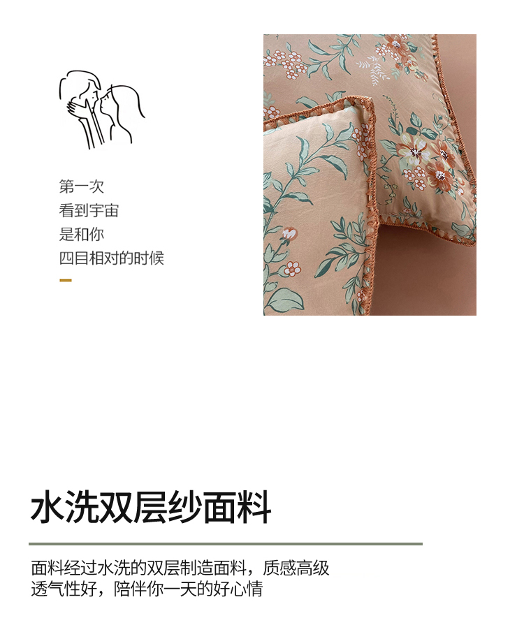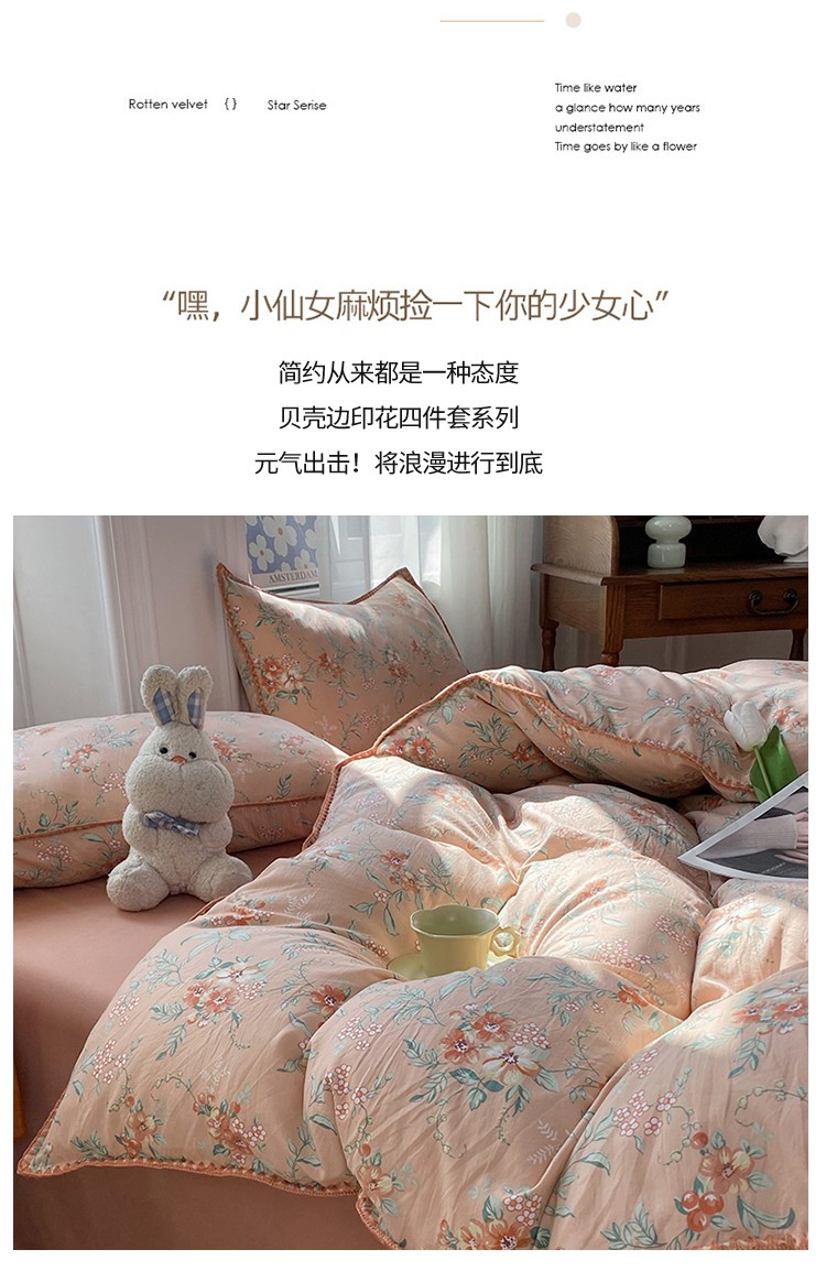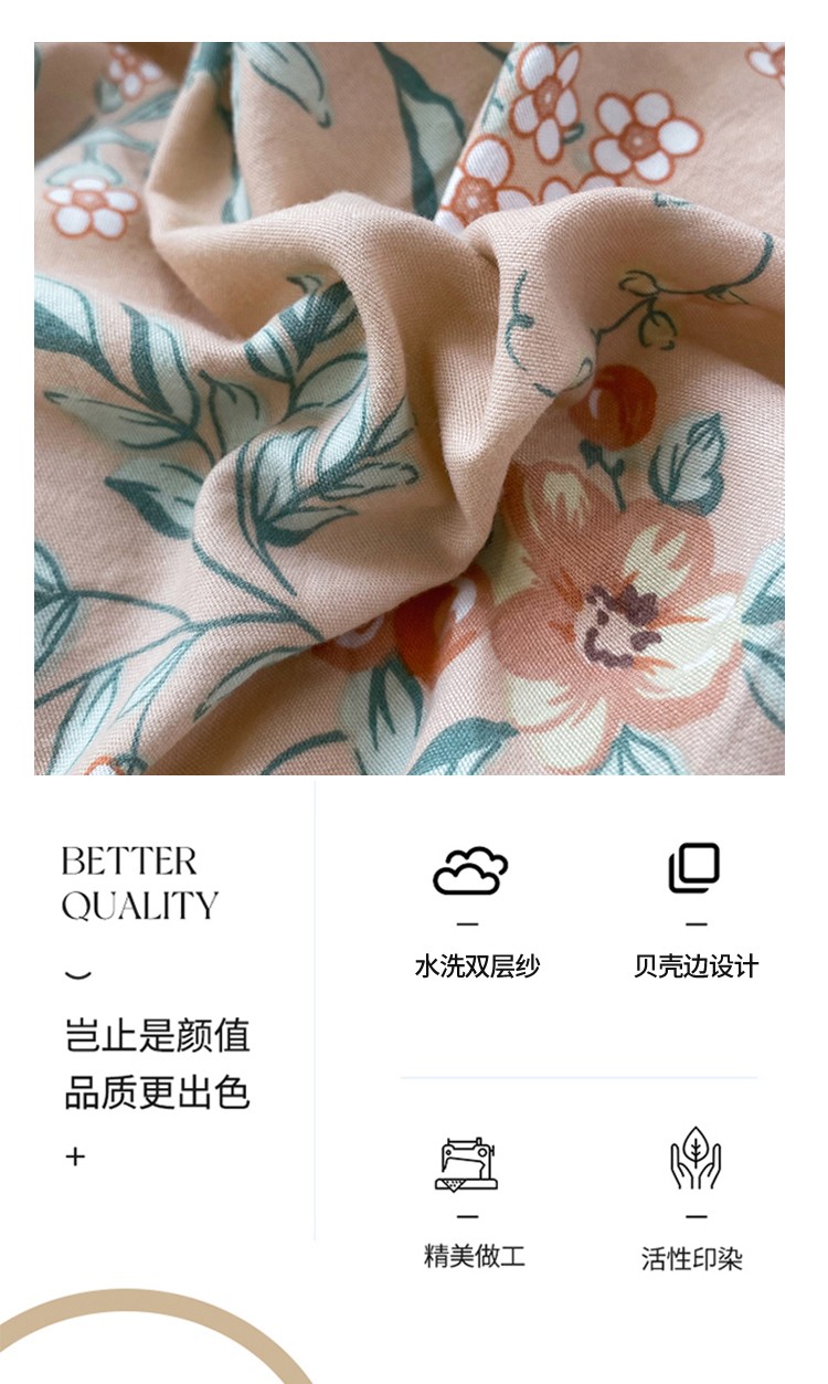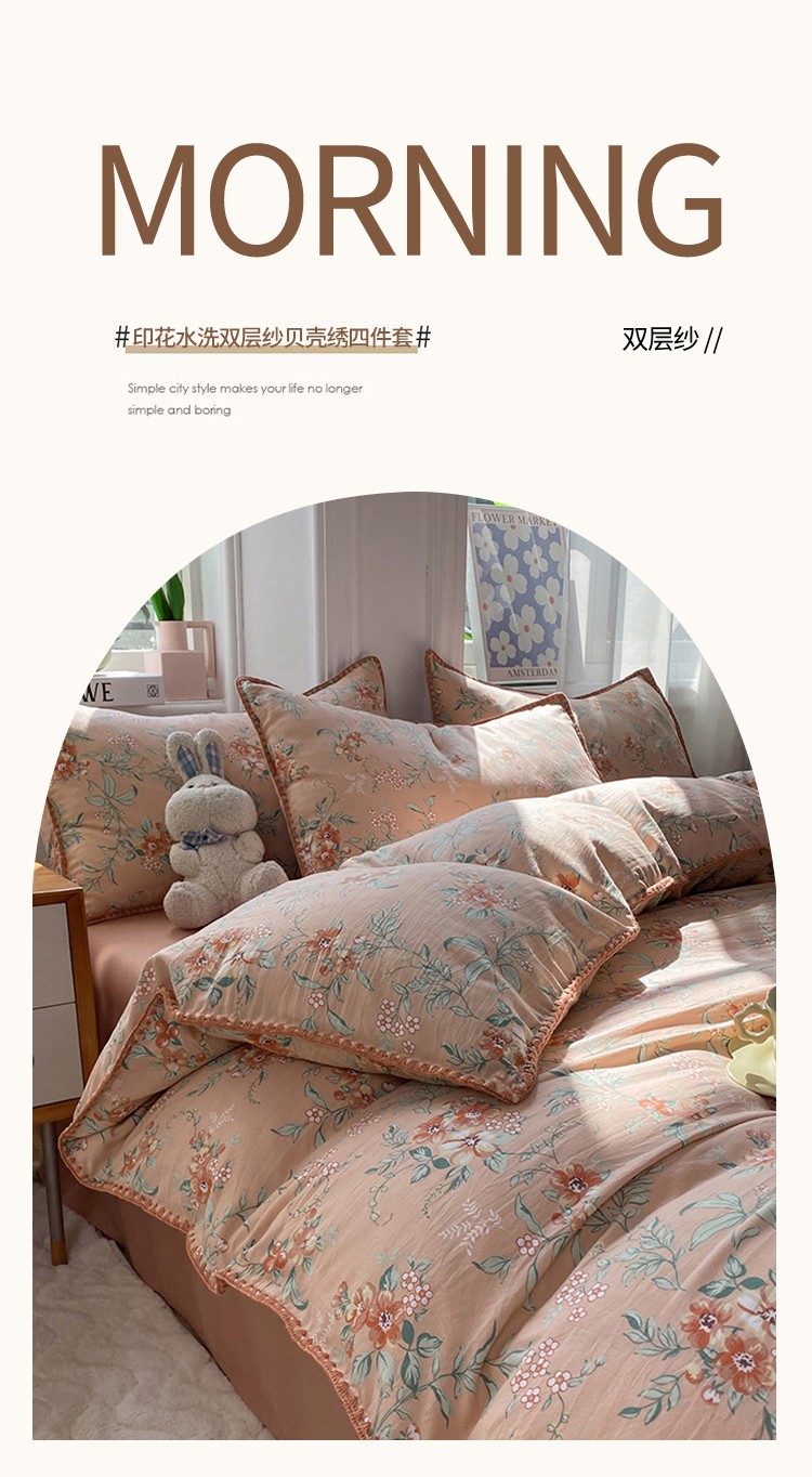 商品名称:妖妖家纺 2023印花水洗双层纱贝克绣四件套 恋恋花开