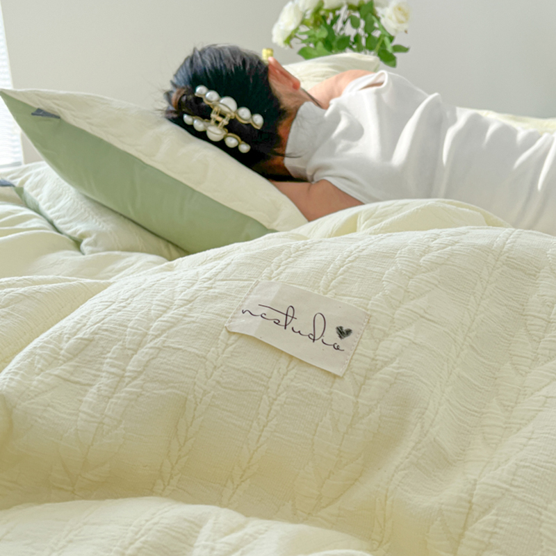 当前位置: 91家纺网 > 商品网购 > 床品套件 > 四件套 > 水洗棉四件套 > 盼季 2023新款小清新针织提花水洗棉麦穗床上四件套--风格一 麦穗-奶黄绿