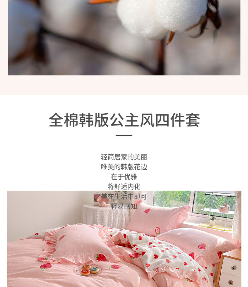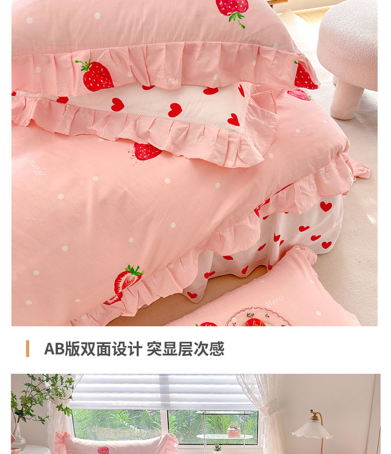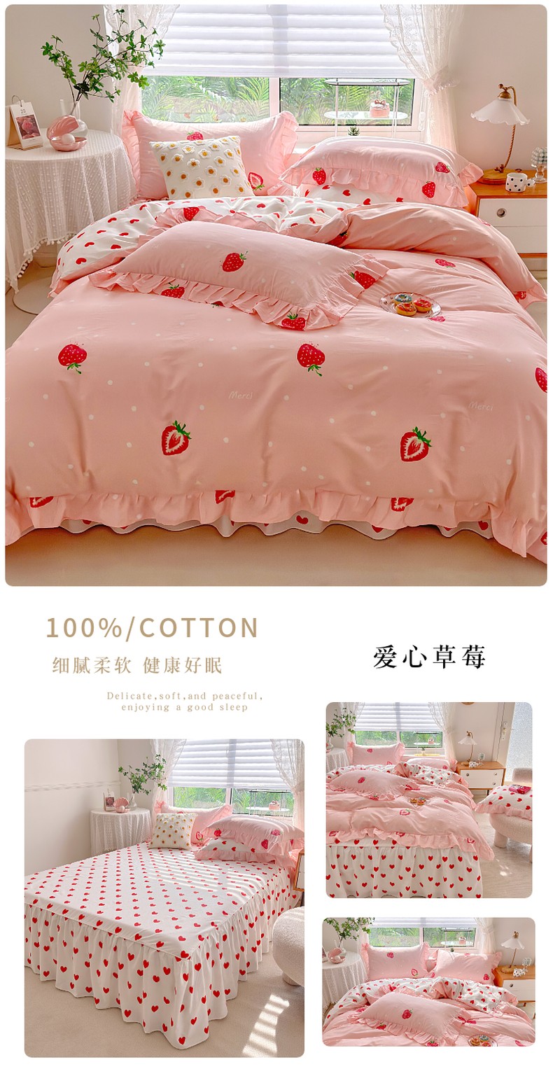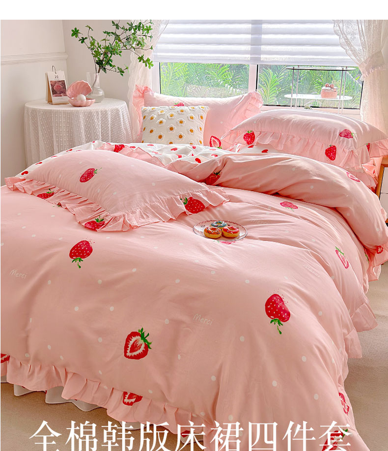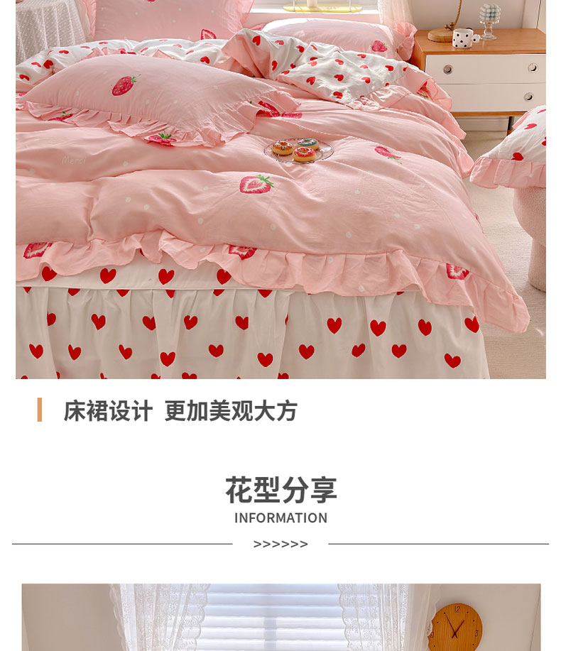 商品名称:亲亲公主 2025新款全棉韩版床裙款四件套 爱心草莓