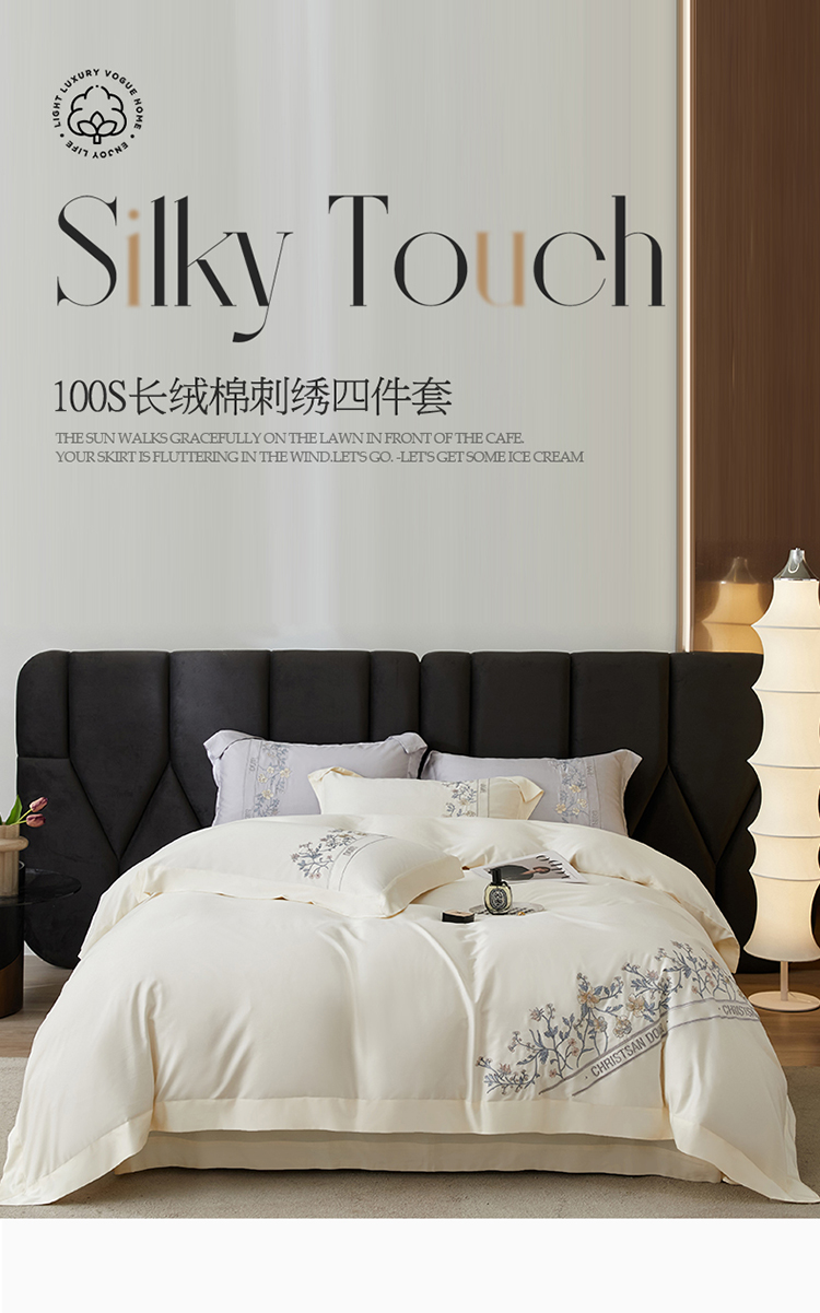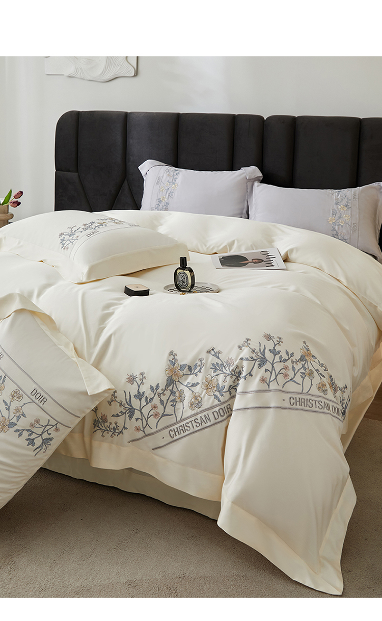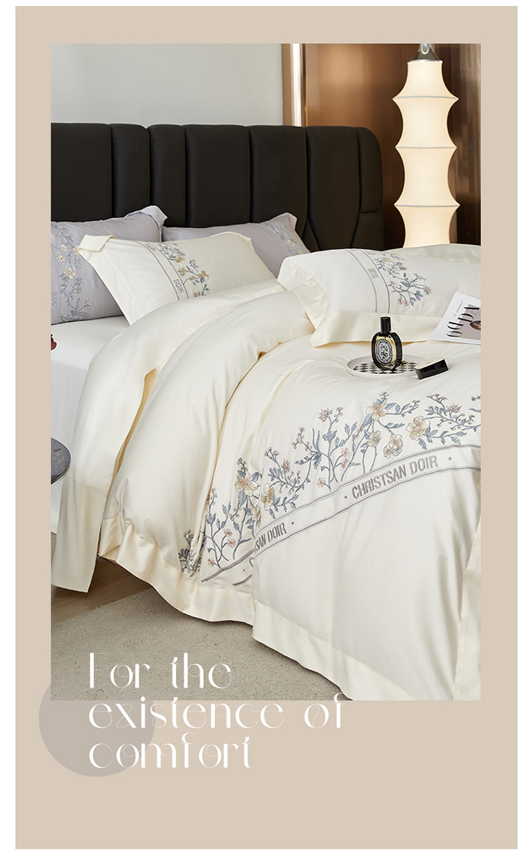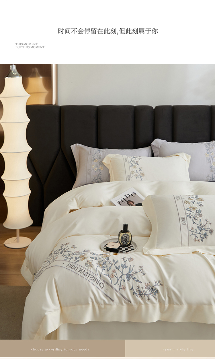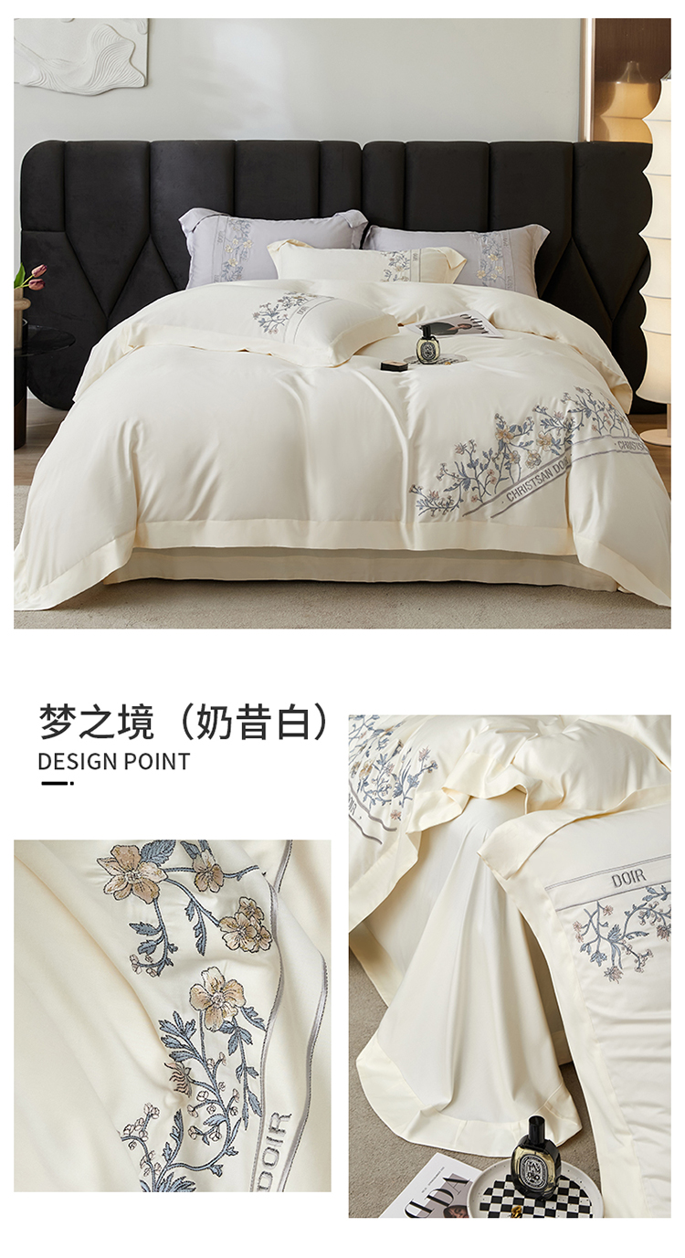 名品优仓 2023新款高支高密长绒棉刺绣款四季可用四件套梦之境系列 梦之境(奶昔白)