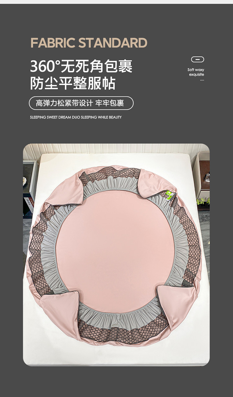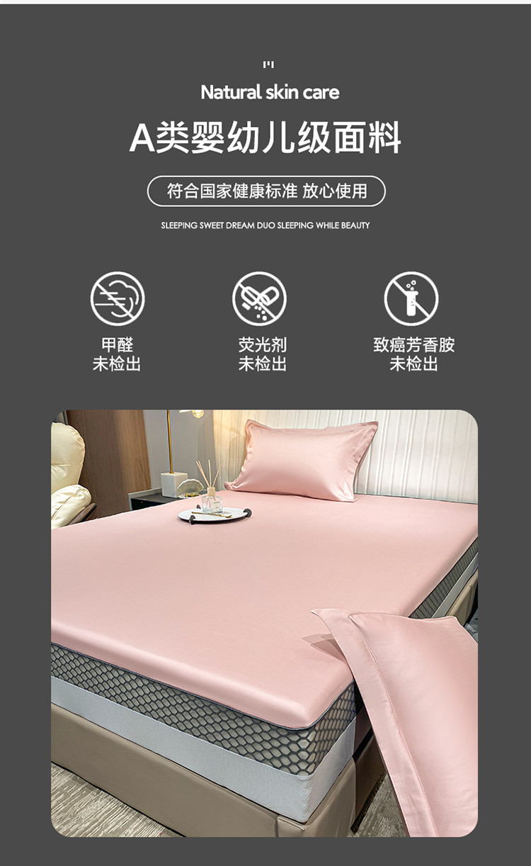商品名称:A类透气50支贡缎高支床笠三件套单件纯棉床罩床垫防滑保护罩 路易斯-玉颜粉