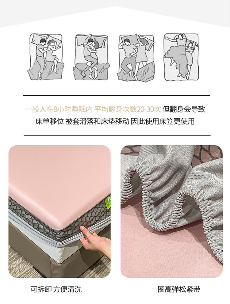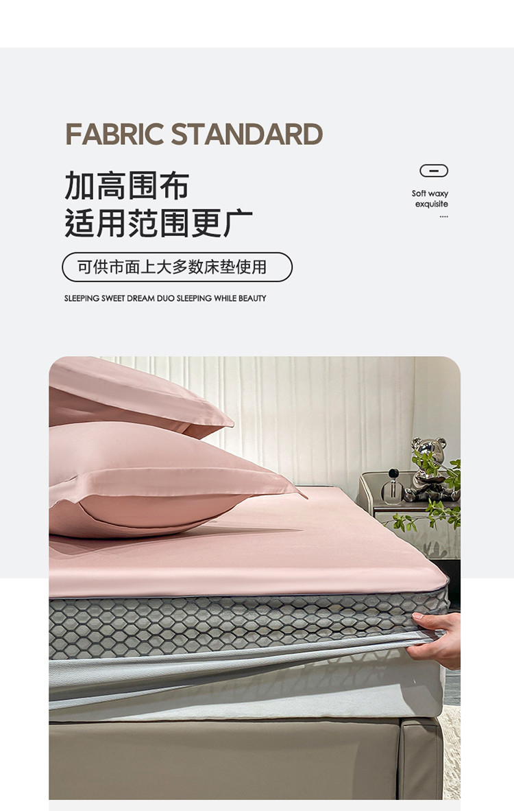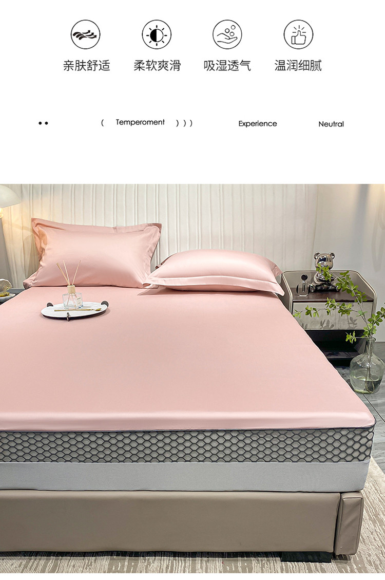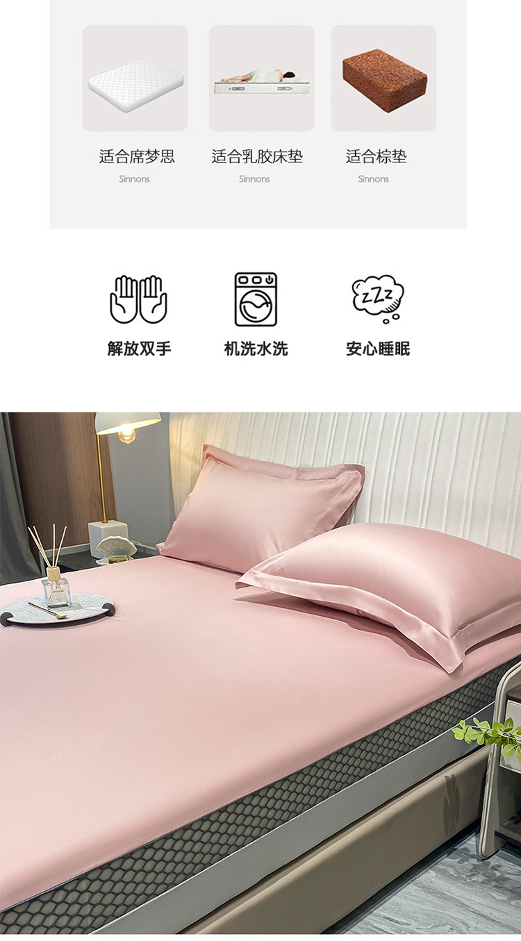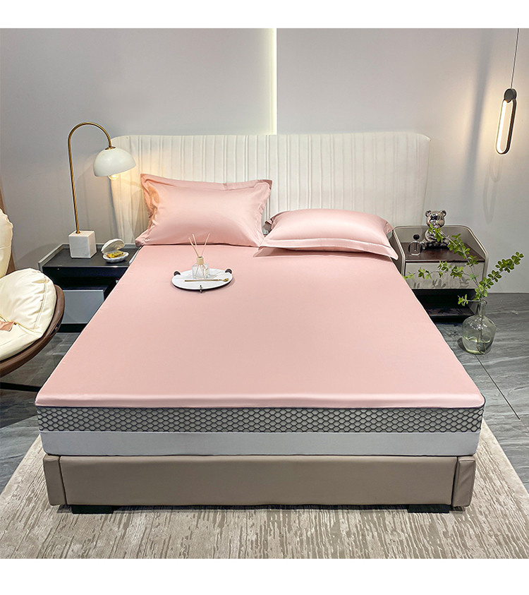 A类透气50支贡缎高支床笠三件套单件纯棉床罩床垫防滑保护罩 路易斯-玉颜粉