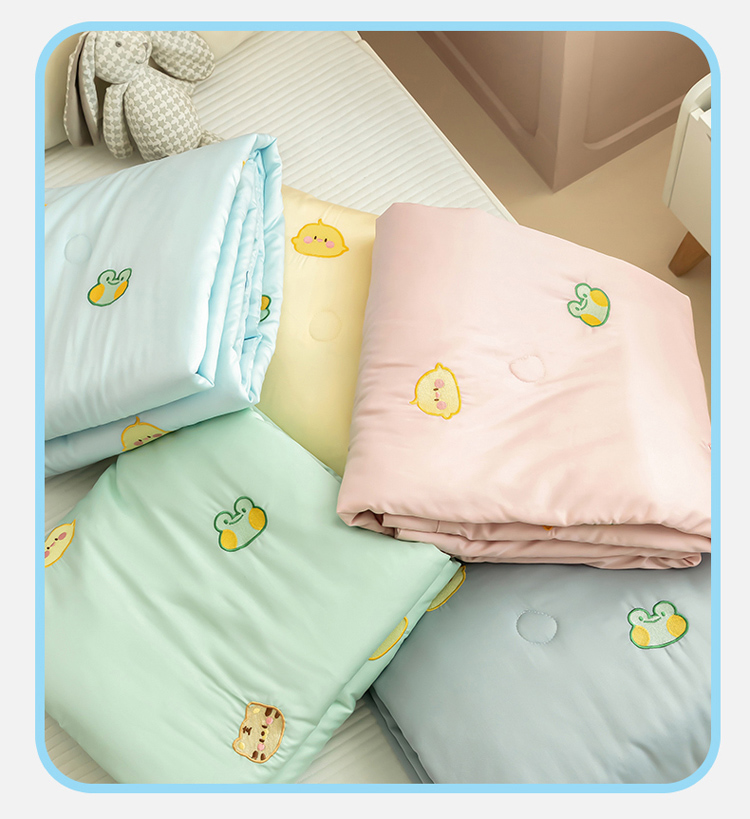(总)喜多兔儿童家纺 2025新款小惊喜儿童蚕丝蛋白天丝抗菌夏凉被,粉色礼貌小鸭,粉色围裙小兔宝,黄色多彩小狗,黄色画画小猫,灰蓝色活动熊猫,灰蓝色运动小狮子,卡其色勤劳小马,卡其色围兜小熊,绿色萌萌恐龙,绿色微笑小猴