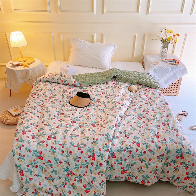 商品名称:苏拉家居 2023新款纯棉全棉豆豆被春秋夏被直播爆款 小草莓