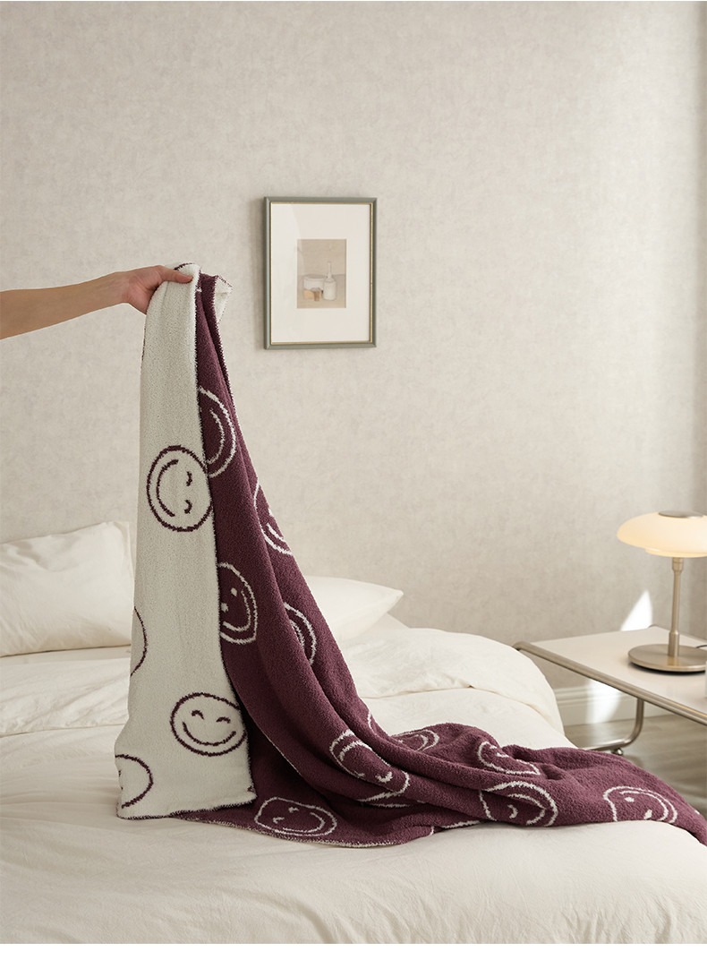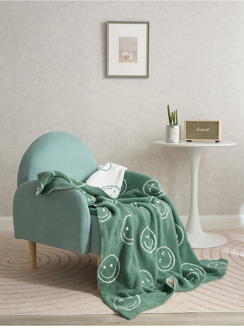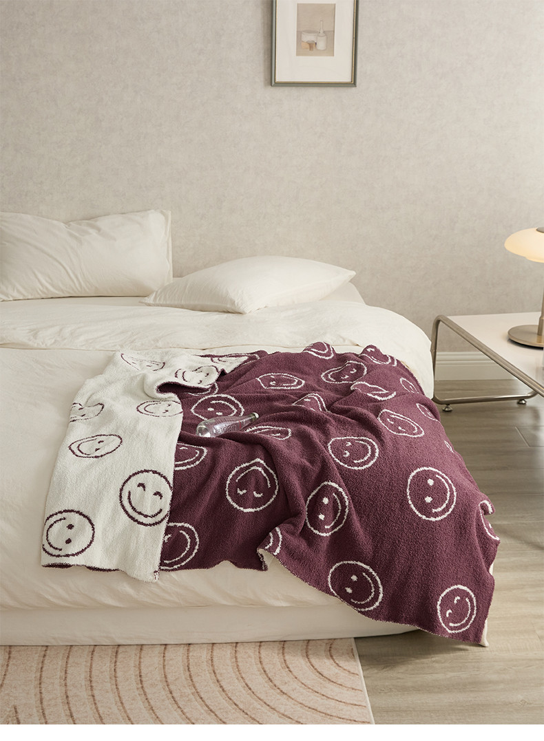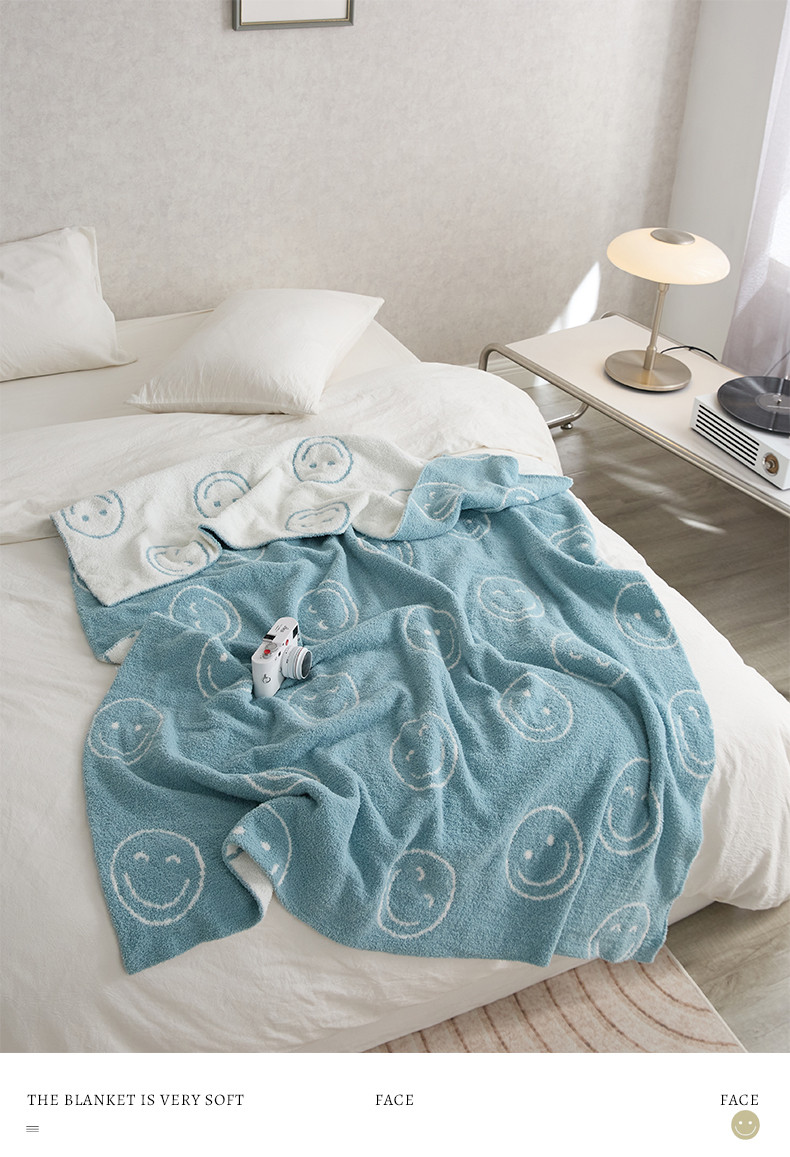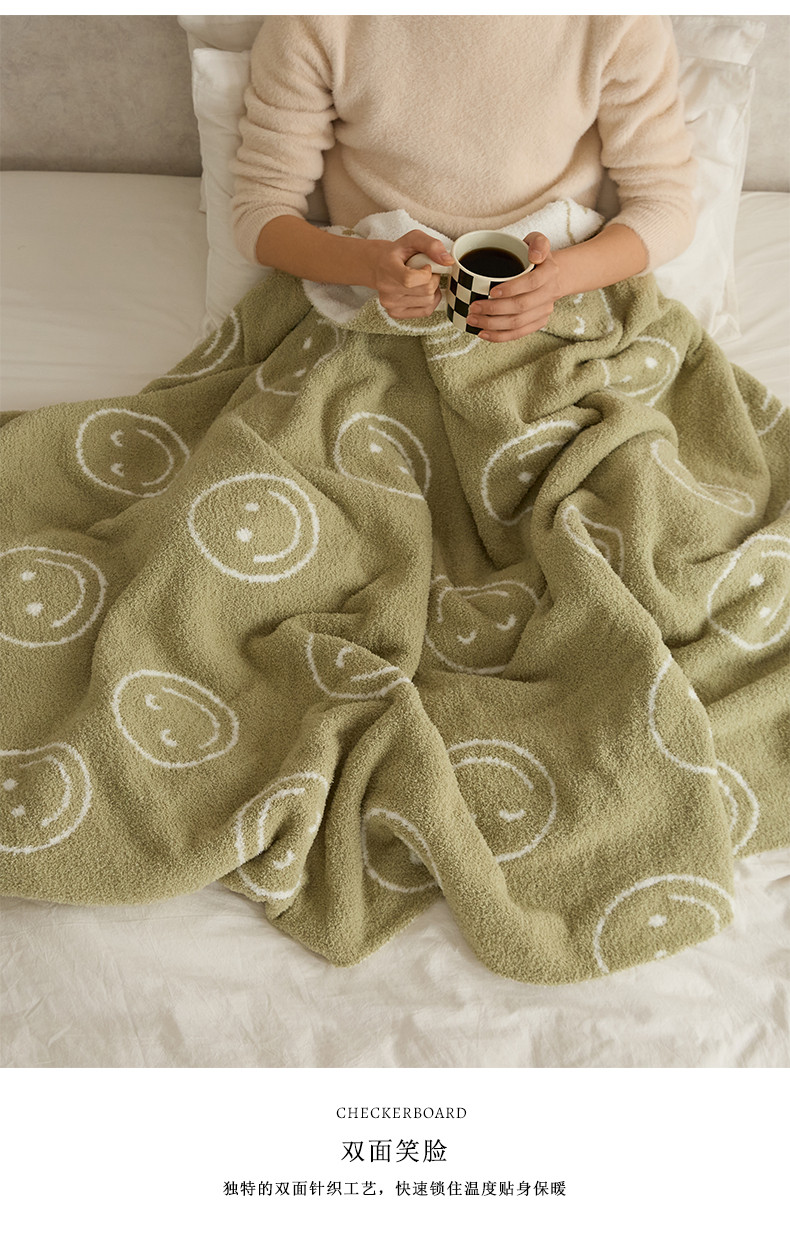 (总)暖绵绵 笑脸半边绒多功能盖毯休闲毯旅行毯午睡毯沙发毯装饰毯