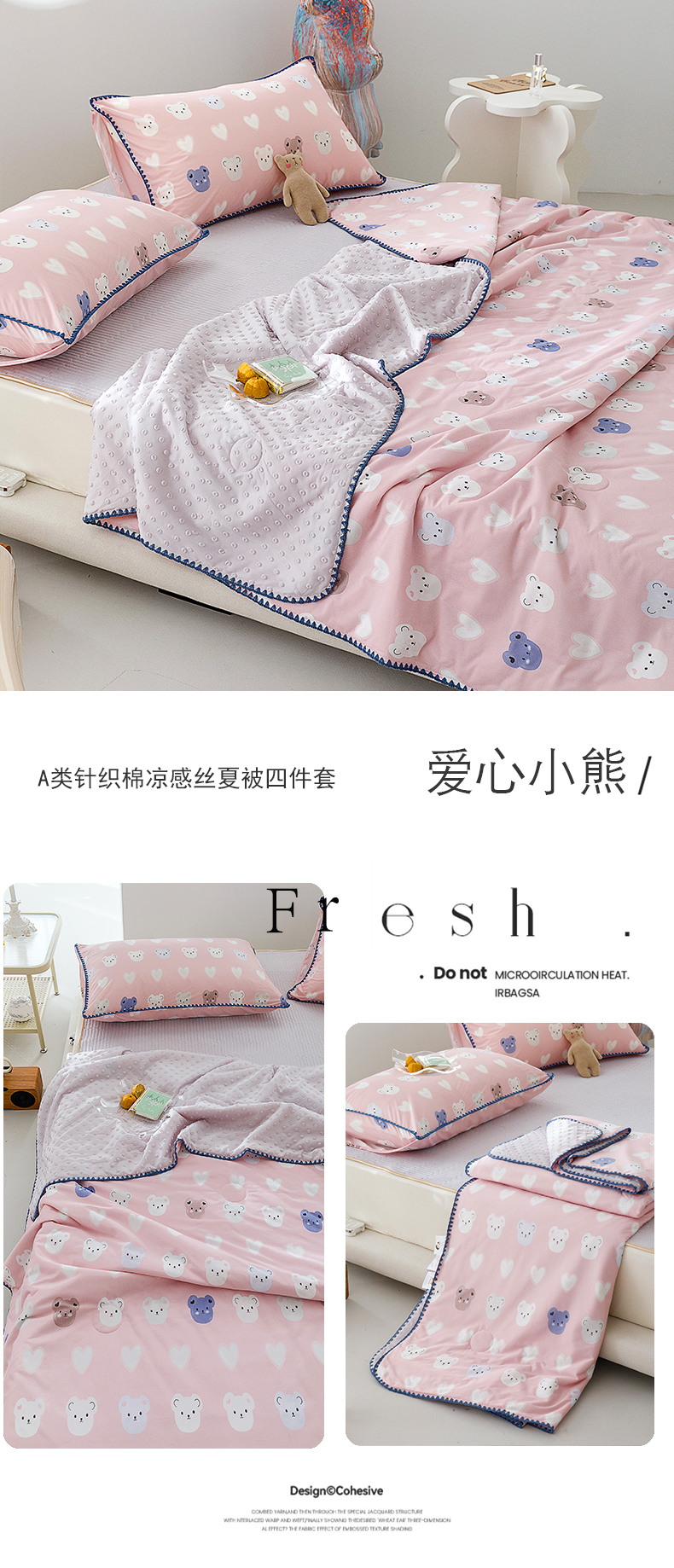 当前位置: 91家纺网 > 商品网购 > 床上用品 > 凉席 > 凉席套件 > 花漾 2024新款A类针织棉凉感丝夏被凉席四件套自然光 爱心小熊