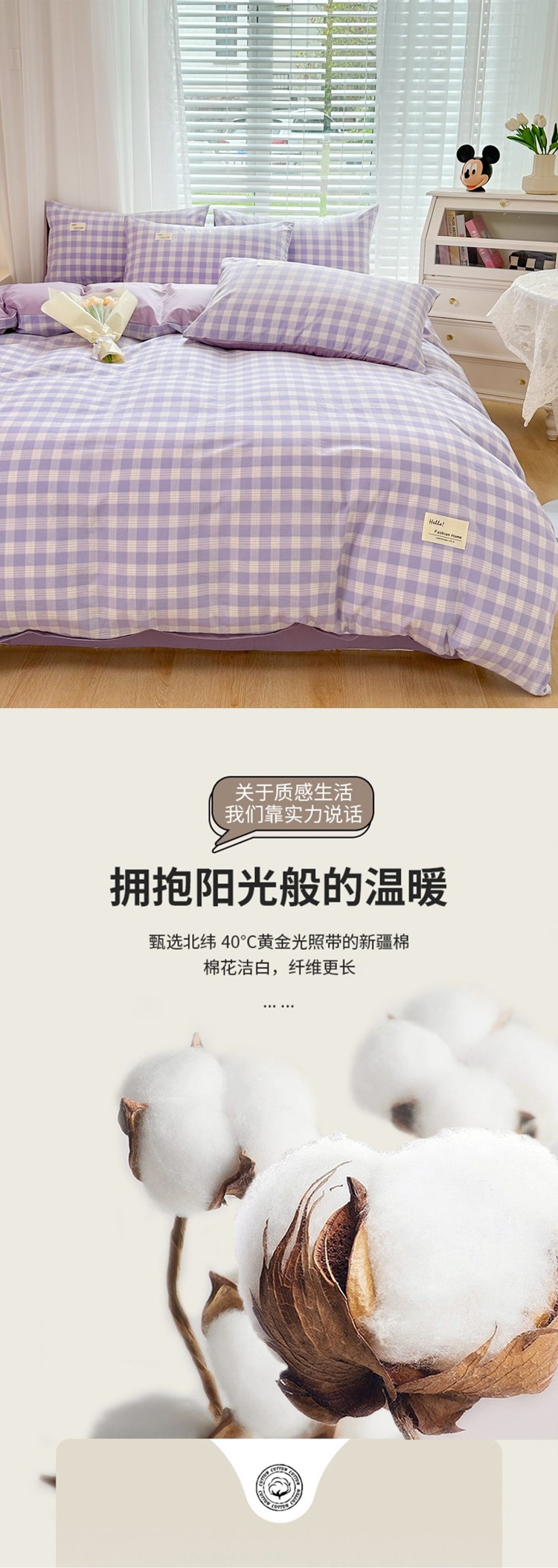 (总)尹黛尔 2024全棉色织水洗棉四件套纯棉被套床单床笠学生三件套