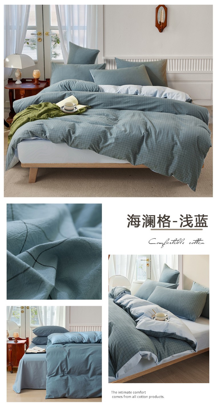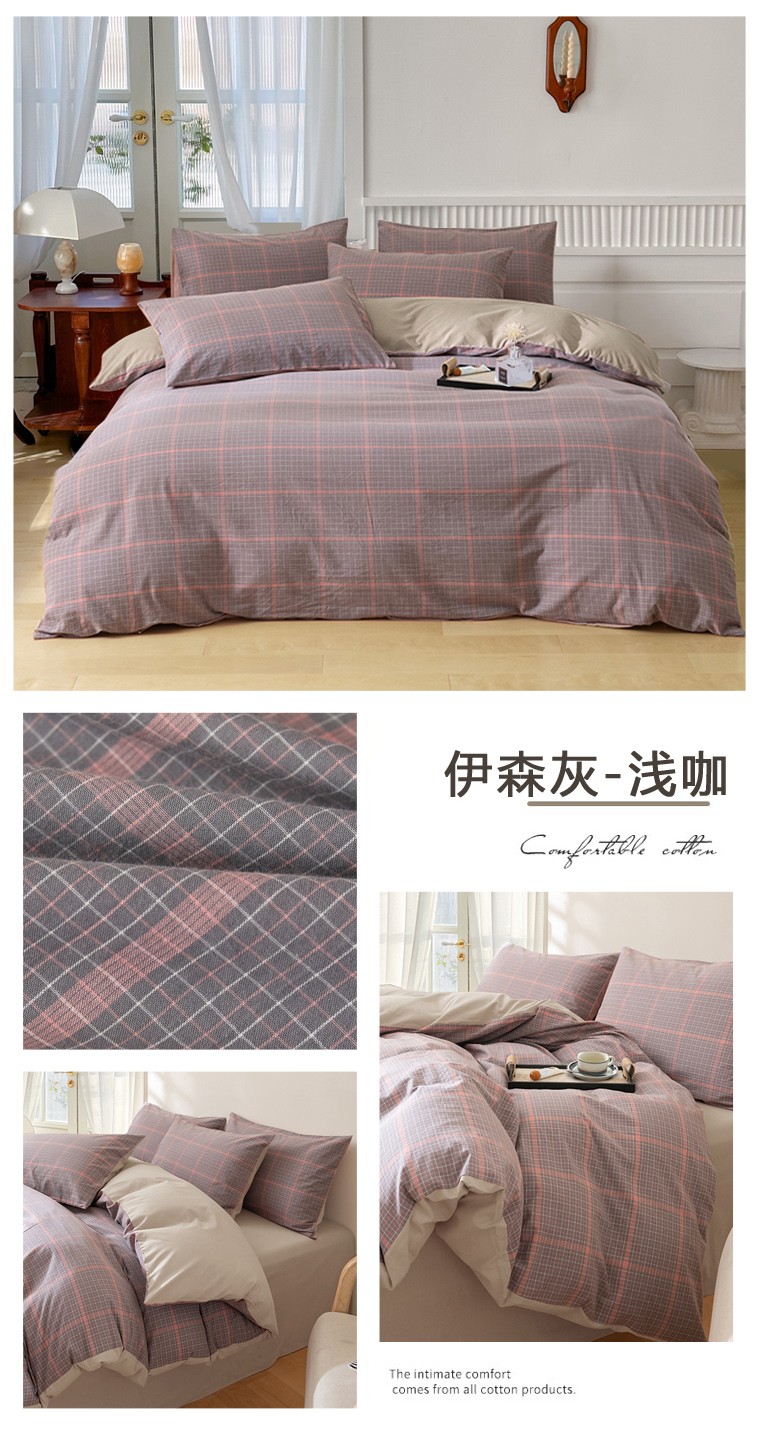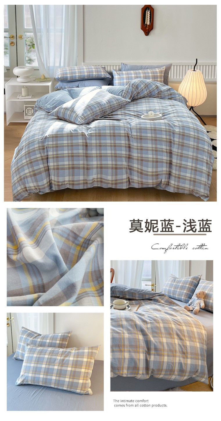 (总)尹黛尔 2024全棉色织水洗棉四件套纯棉被套床单床笠学生三件套,宝利格-浅咖,海澜格-浅蓝,绿大格,莫妮粉+脏粉,浅蓝格-浅蓝,小粉格(脏粉),伊森灰-浅咖,恩格紫,蓝大格-湖蓝,米兰橙-浅橙,莫妮蓝+浅蓝,森屿绿-草绿,伊森粉-浅灰