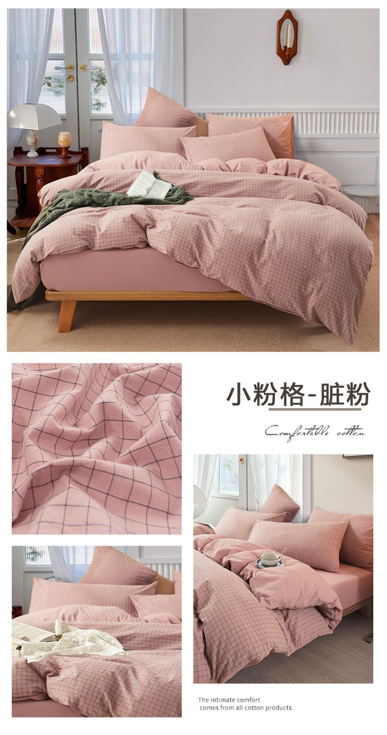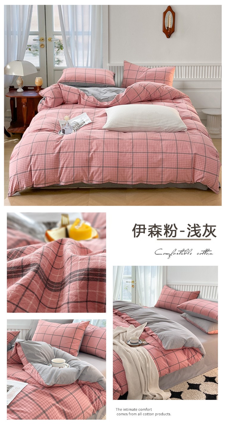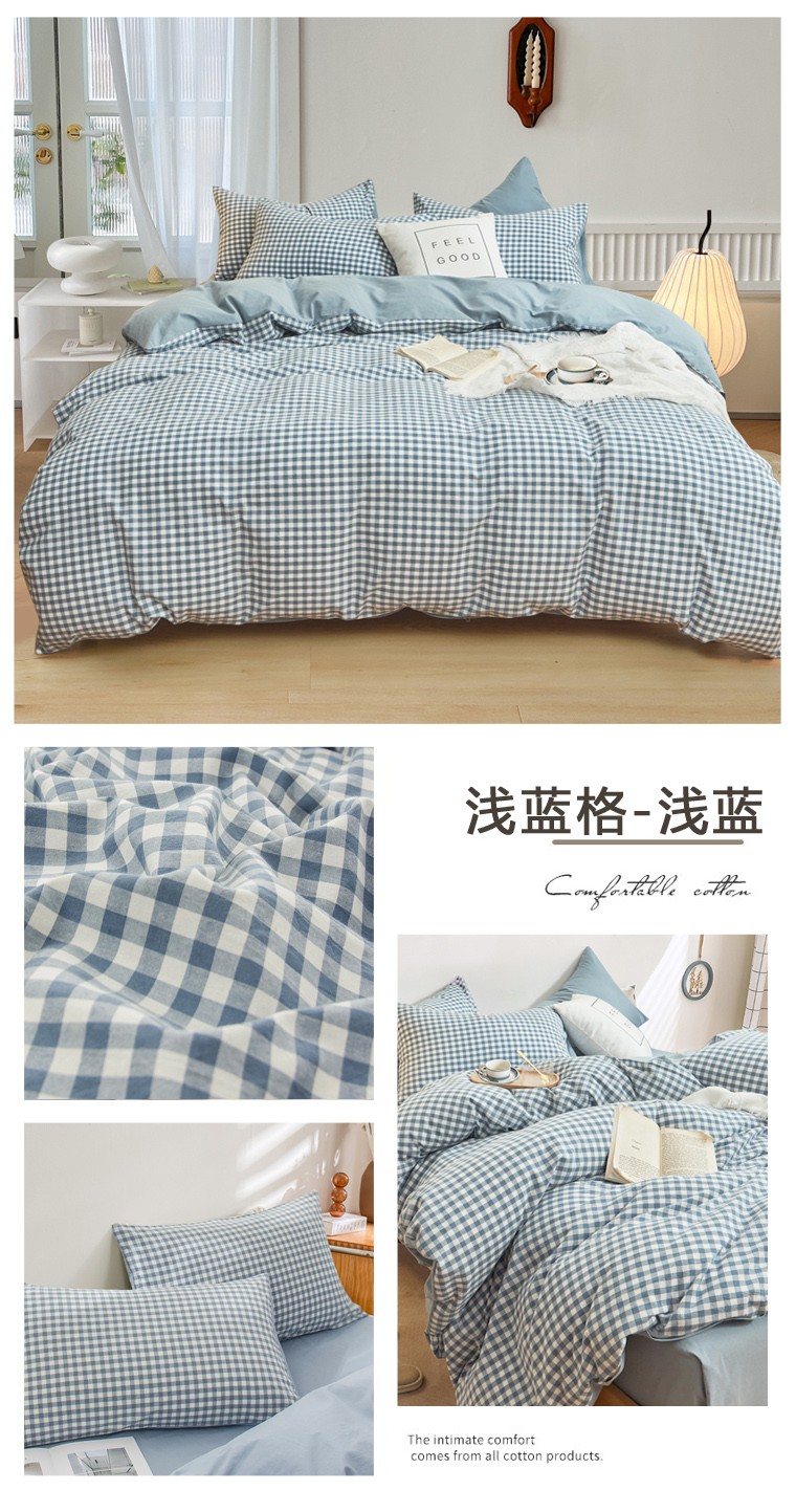 (总)尹黛尔 2024全棉色织水洗棉四件套纯棉被套床单床笠学生三件套,宝利格-浅咖,海澜格-浅蓝,绿大格,莫妮粉+脏粉,浅蓝格-浅蓝,小粉格(脏粉),伊森灰-浅咖,恩格紫,蓝大格-湖蓝,米兰橙-浅橙,莫妮蓝+浅蓝,森屿绿-草绿,伊森粉-浅灰