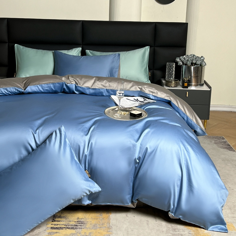 当前位置: 91家纺网 > 商品网购 > 床品套件 > 四件套 > 长绒棉四件套 > 莱阁亿 2023新款高支高密新疆长绒棉四件套 风景蓝+冰灿银