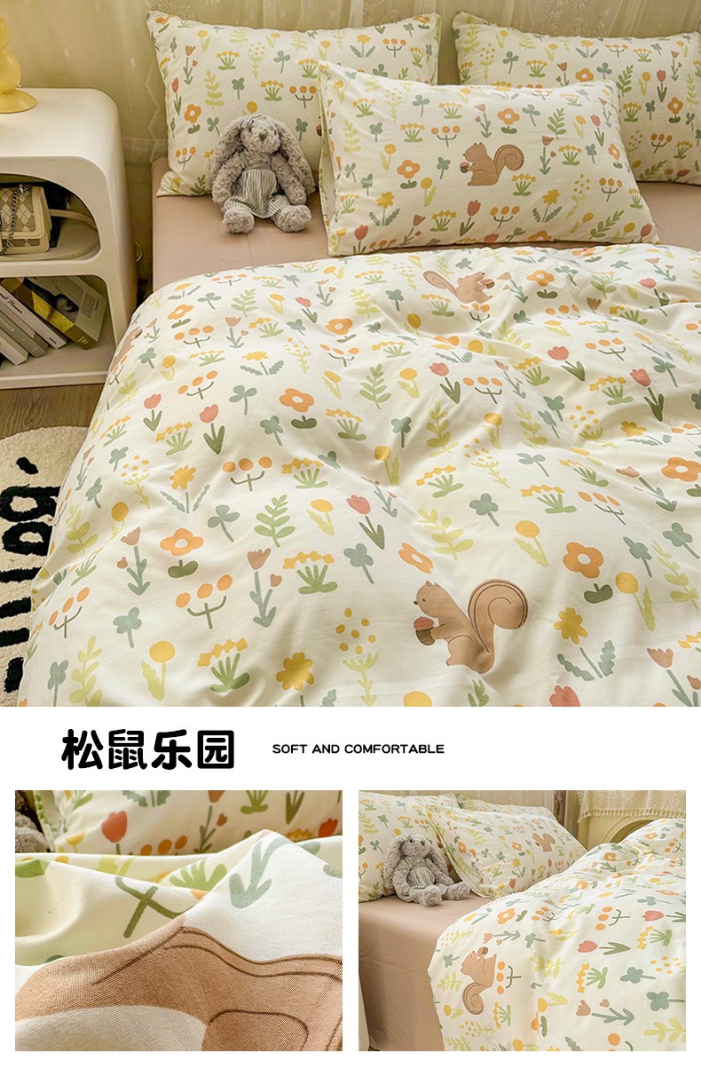当前位置: 91家纺网 > 商品网购 > 床品套件 > 四件套 > 化纤普通四件套 > 港岛妹妹 2024新款水洗双层纱四件套四件套 松鼠乐园
