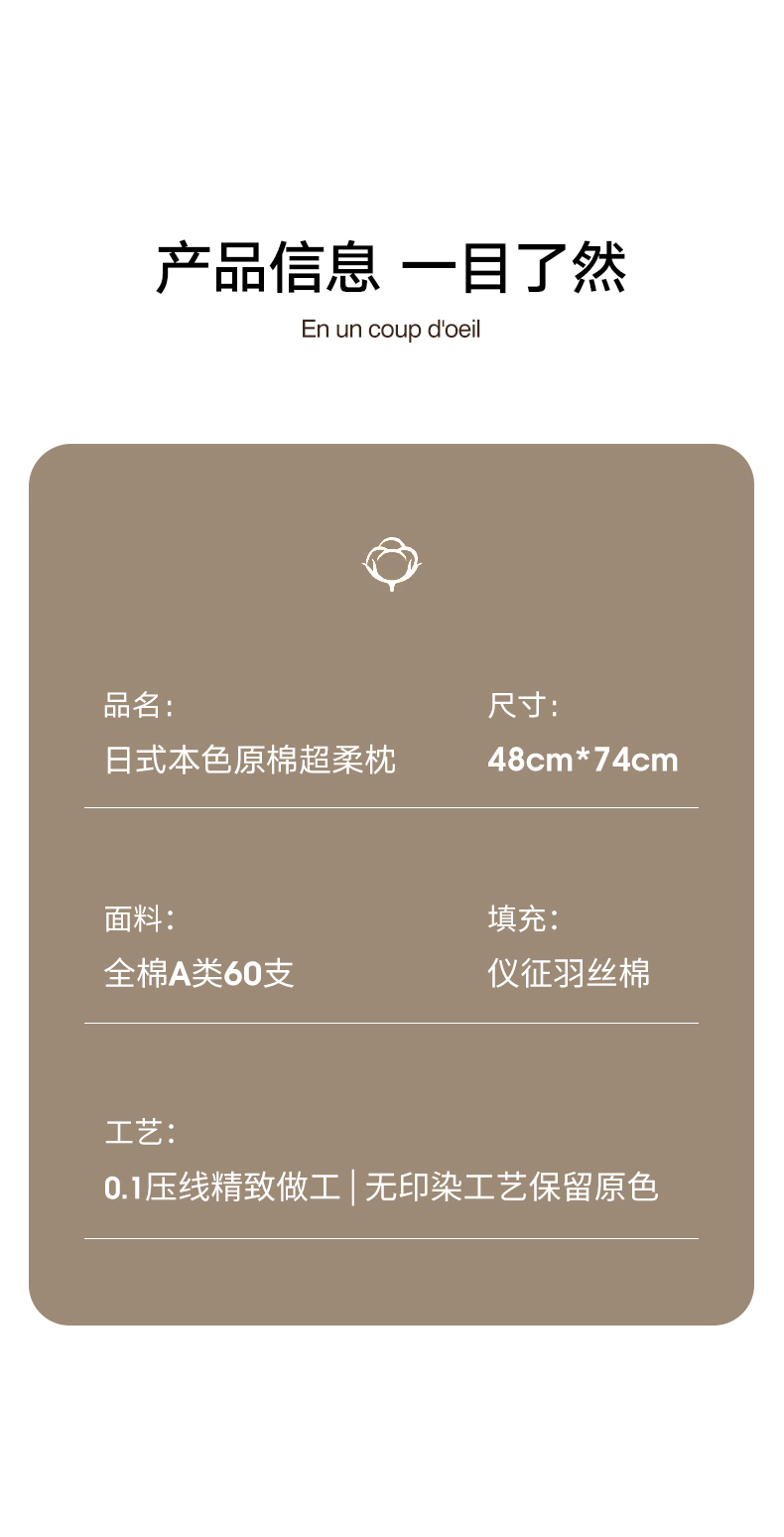 当前位置: 91家纺网 > 商品网购 > 枕头/枕芯/保健枕/颈椎枕 > 普通枕芯 > 拾光枕芯 2023新款全棉A类60s日式本色原棉超柔枕 低枕