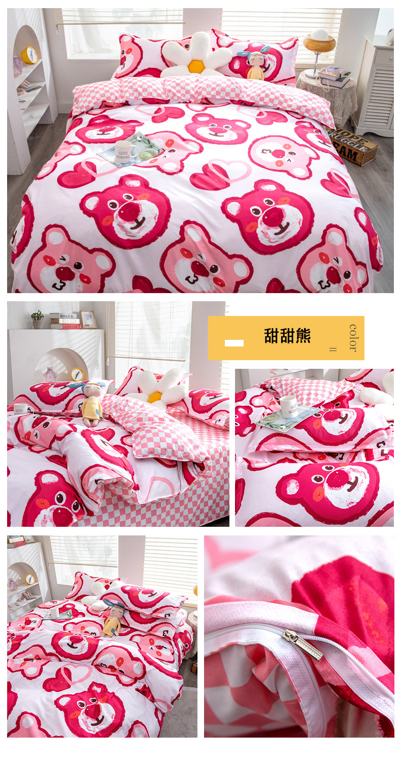 (总)乐居坊 2024新款亲肤棉美棉芦荟棉四件套学生宿舍床(5月),霸王茶姬,有爱,调皮小新,嘟嘟恐龙,怪盗KID,萌萌牛,梦格,梦想猫,奶油熊,偶像派,趣味小熊,荣耀,荣耀之星,天之蕉子,嘻哈