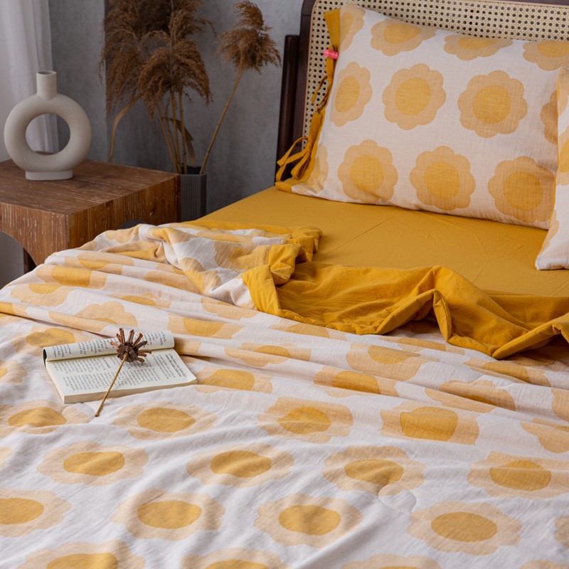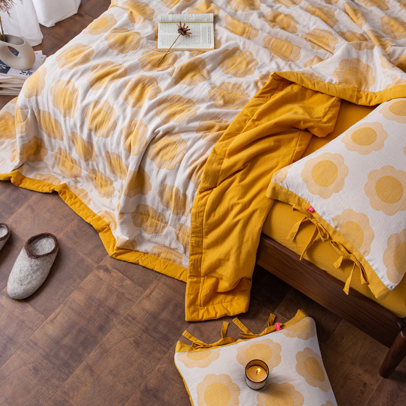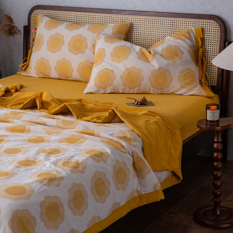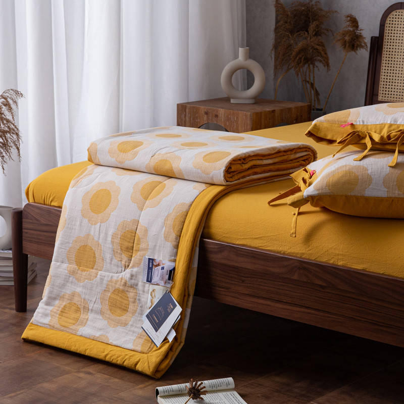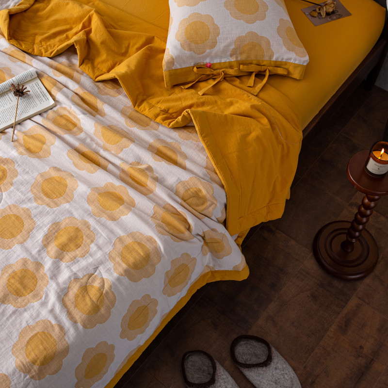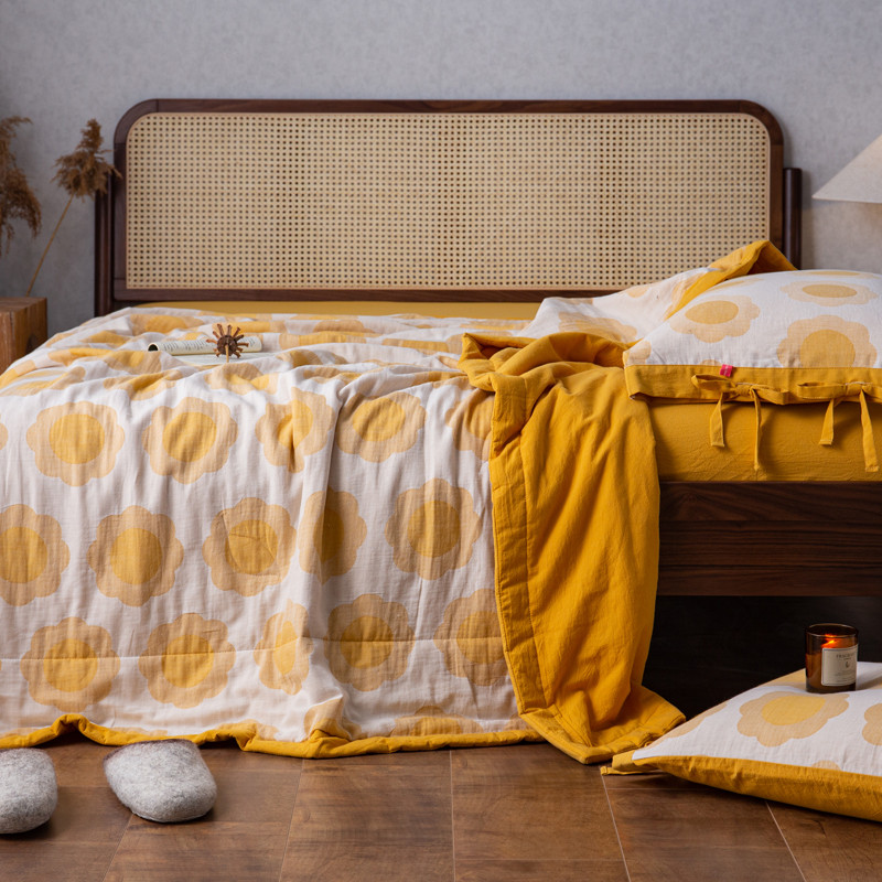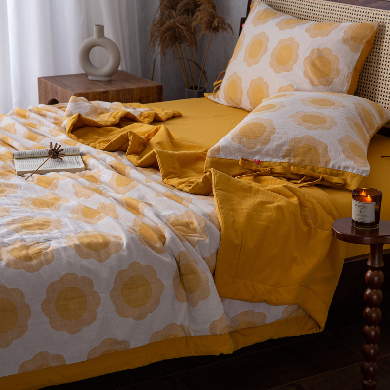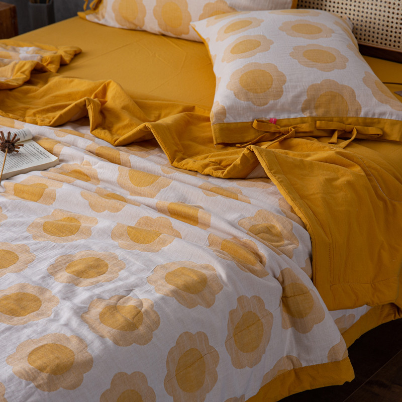商品名称:安莱生活 2023新款 太阳花夏被四件套及单独夏被 太阳花-姜黄