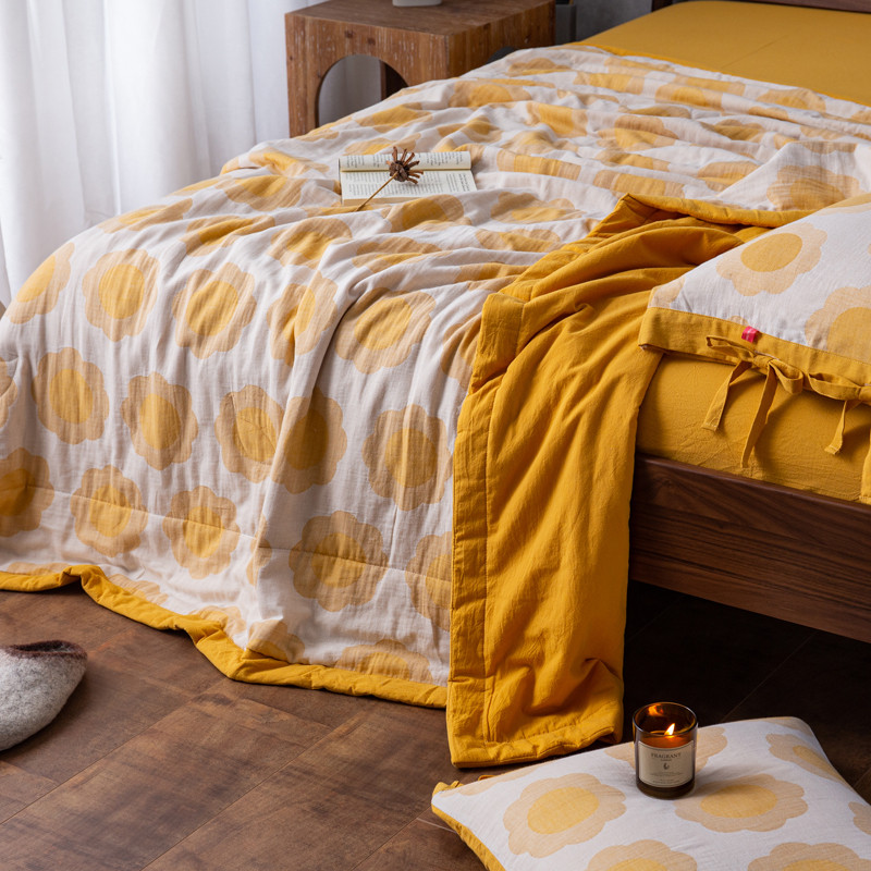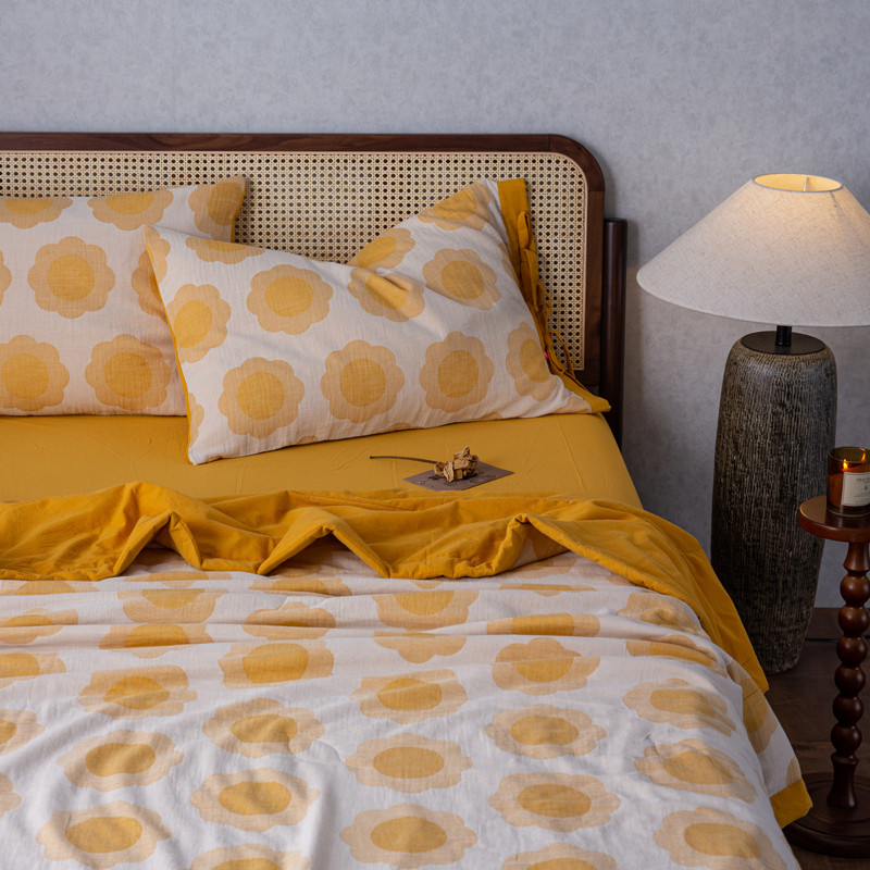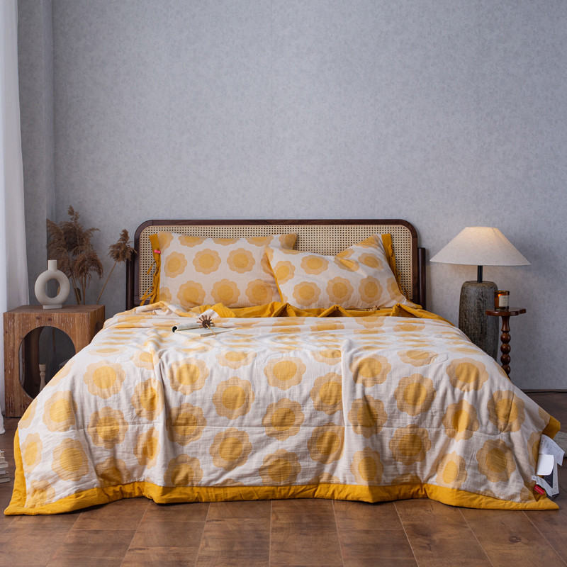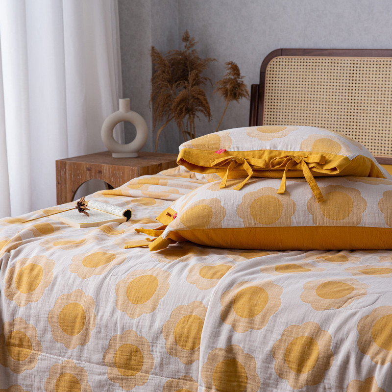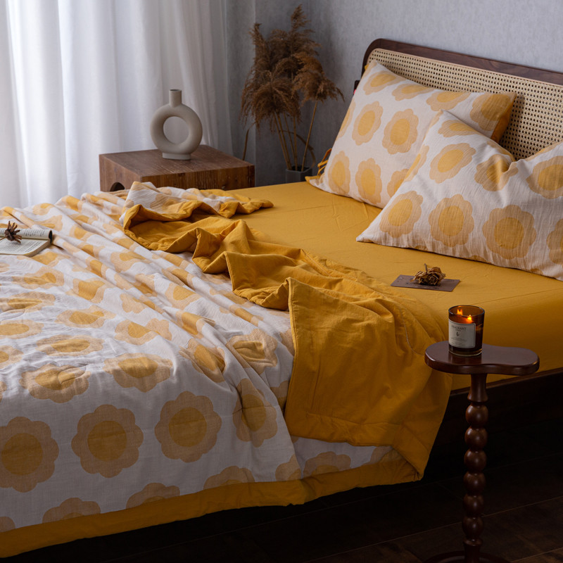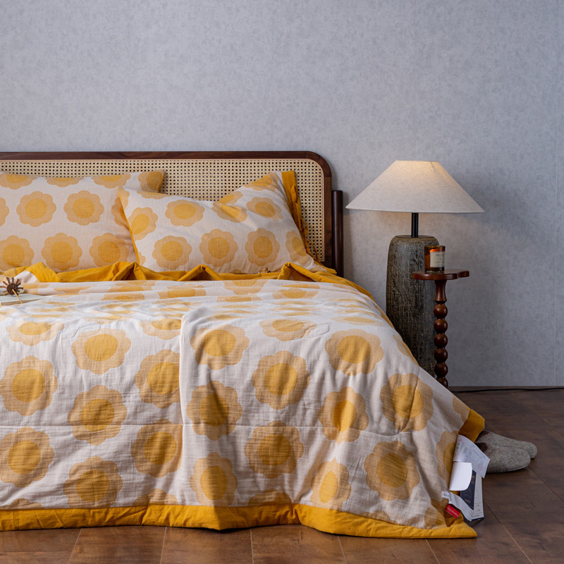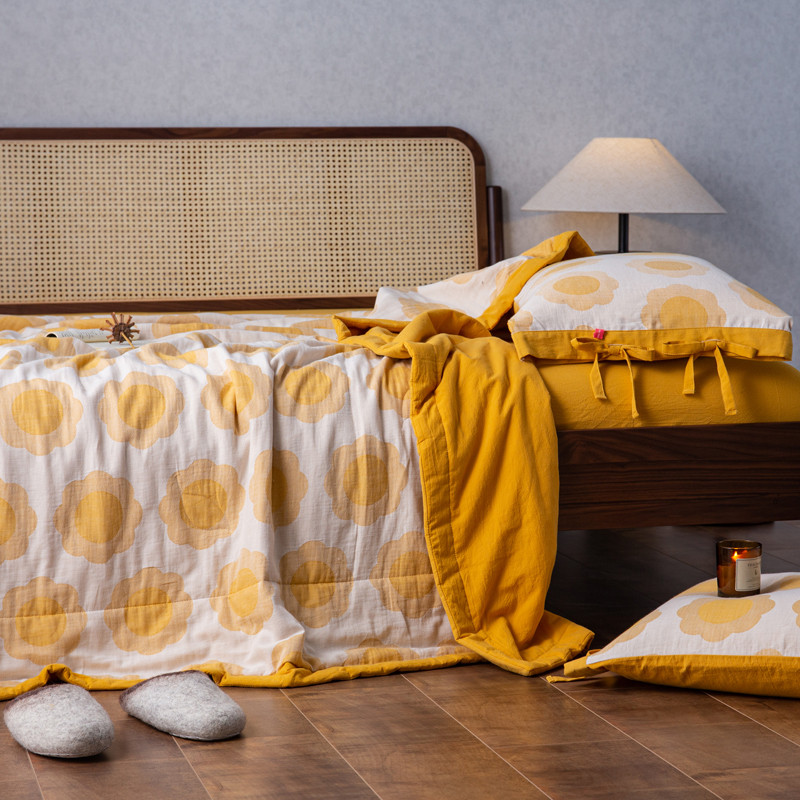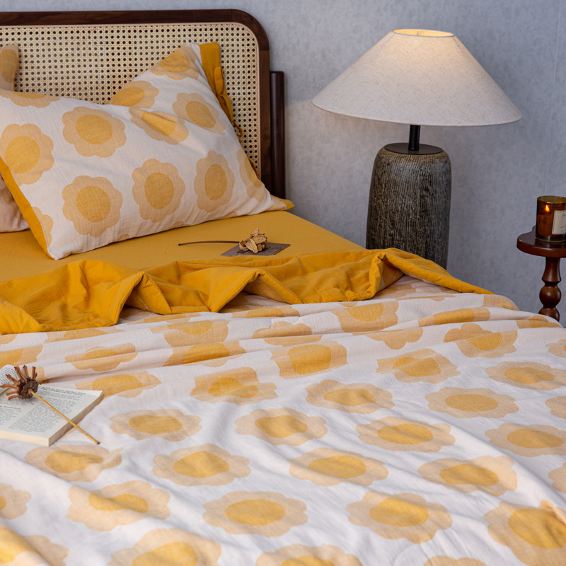 商品名称:安莱生活 2023新款 太阳花夏被四件套及单独夏被 太阳花-姜黄