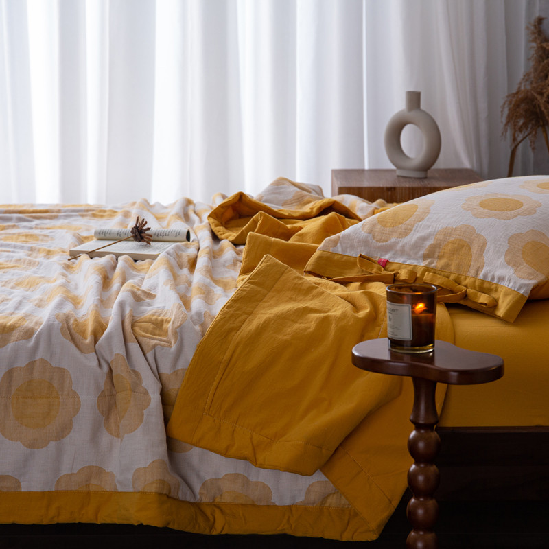 安莱生活 2023新款 太阳花夏被四件套及单独夏被 太阳花-姜黄