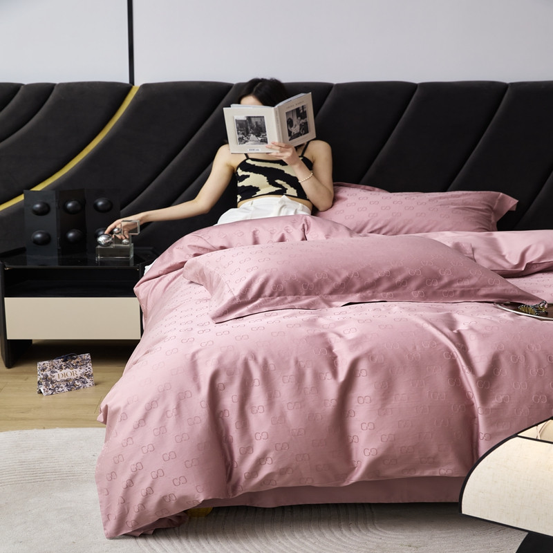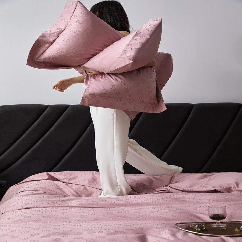 安莱生活 2023新款 100S纯棉提花四件套 简-粉