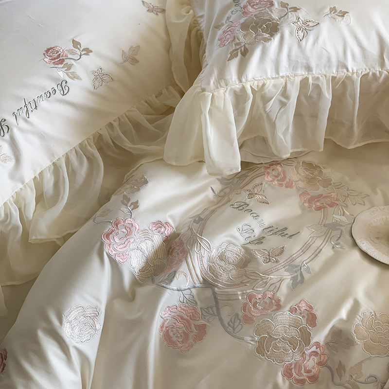 (总)MIU缪家居 2025新款100支全棉四件套-洛丽塔,洛丽塔-白,洛丽塔-粉,洛丽塔-红