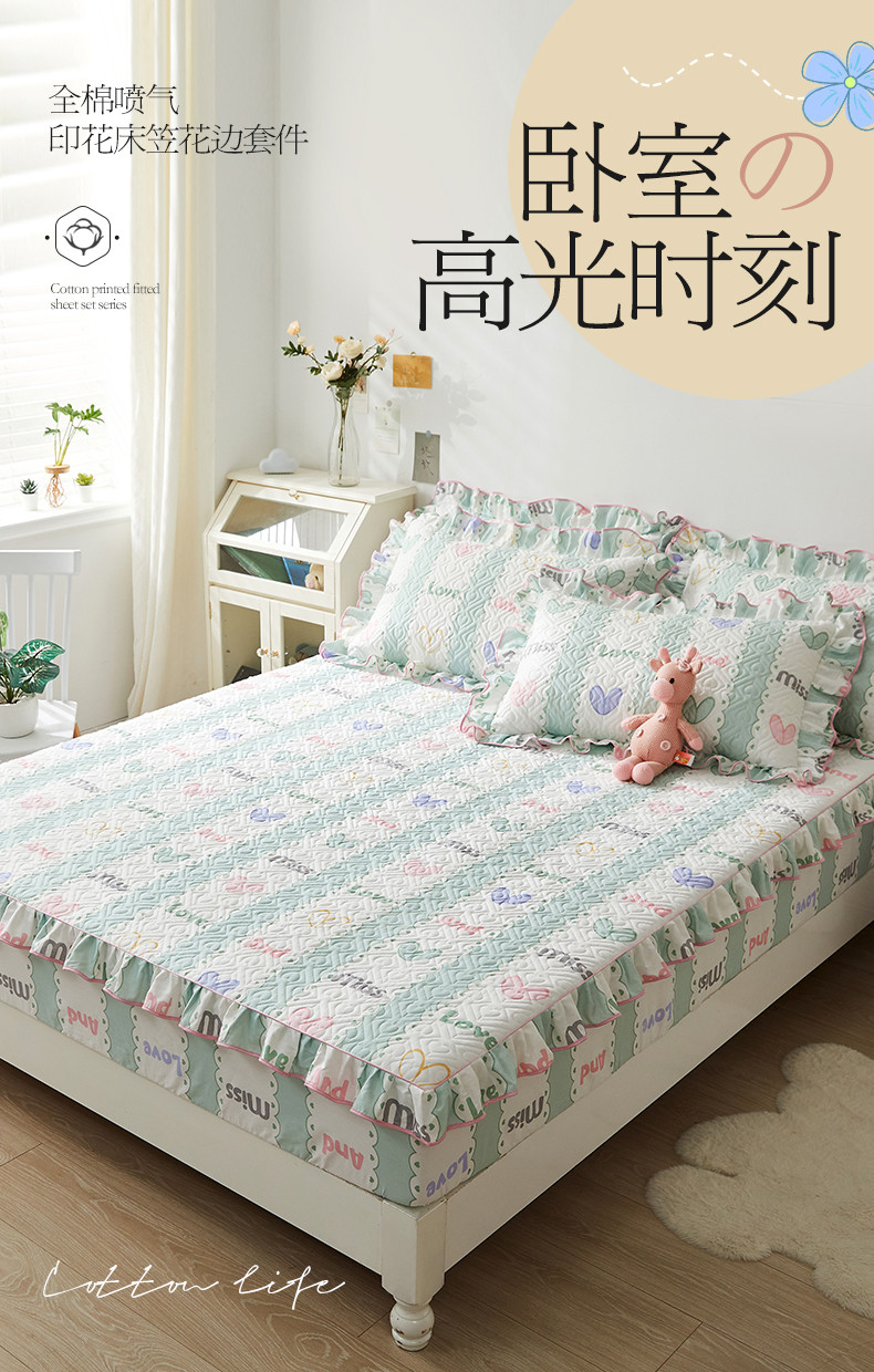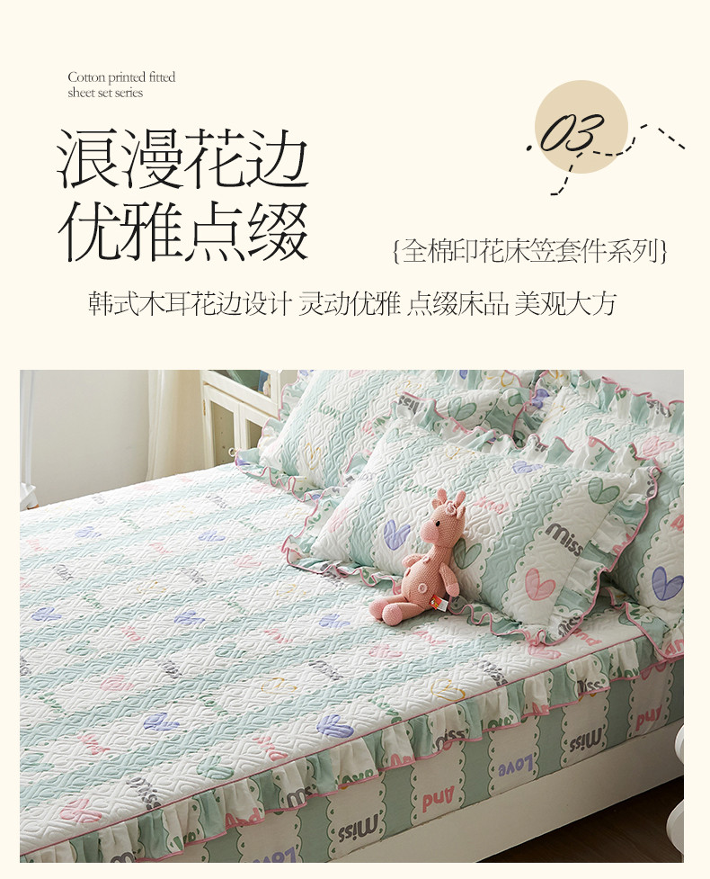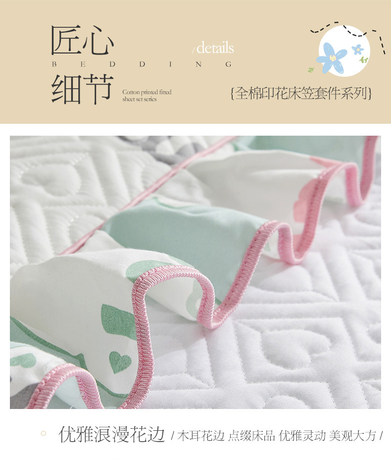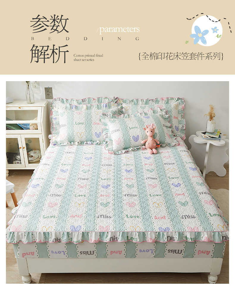 商品名称:宜凡 2023新款全棉印花床笠三件套 心恋曲