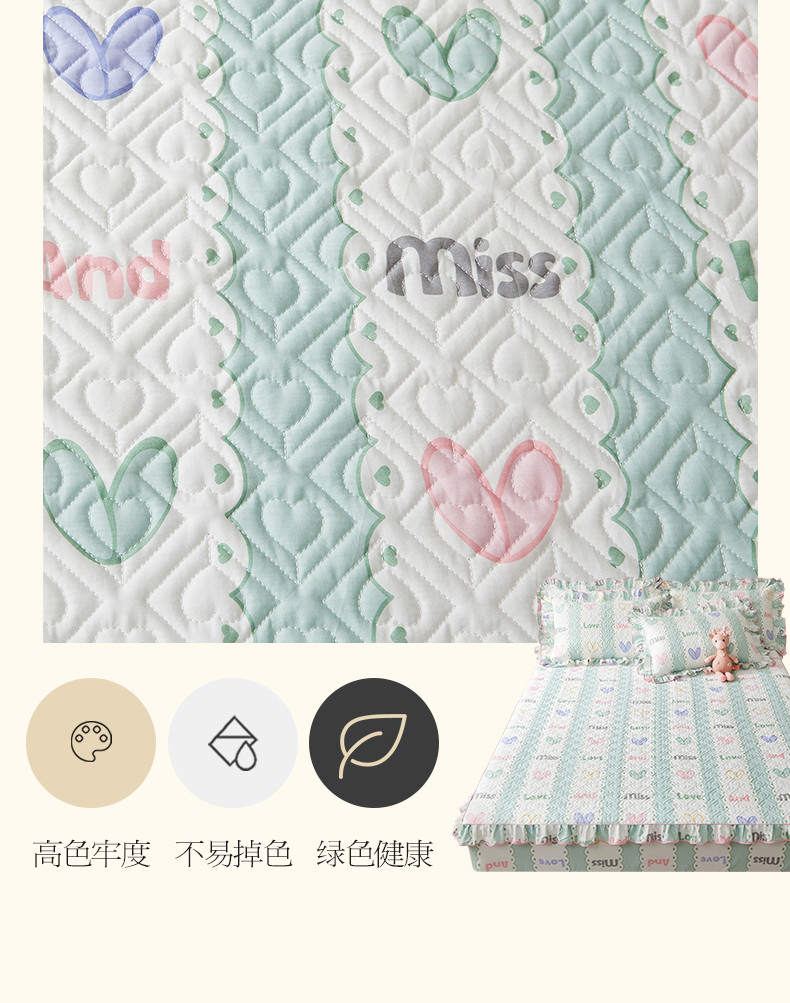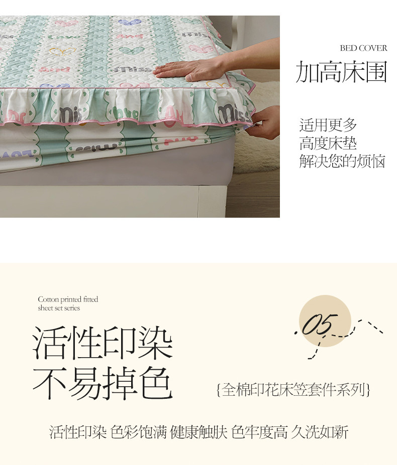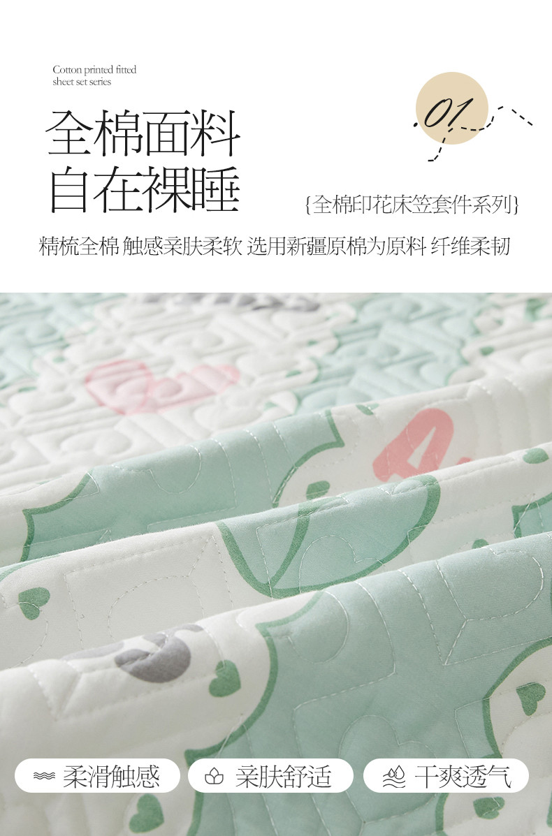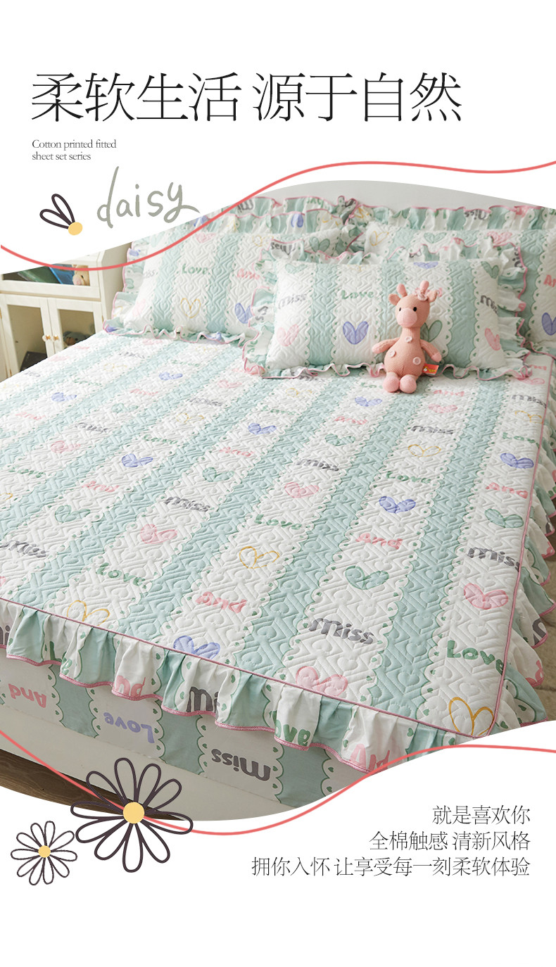 商品名称:宜凡 2023新款全棉印花床笠三件套 心恋曲