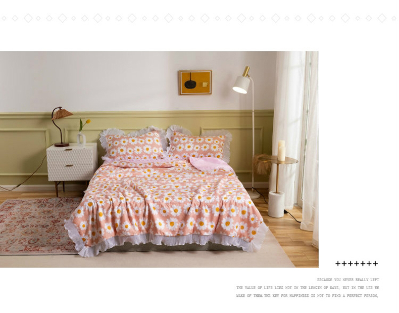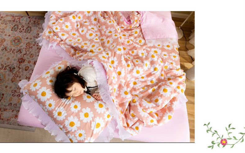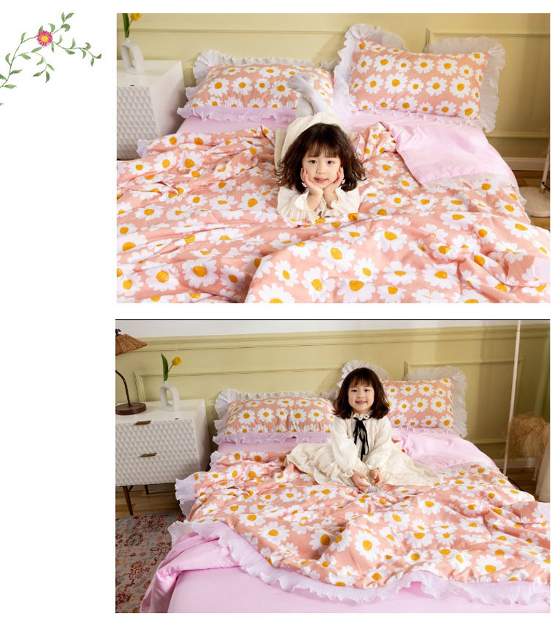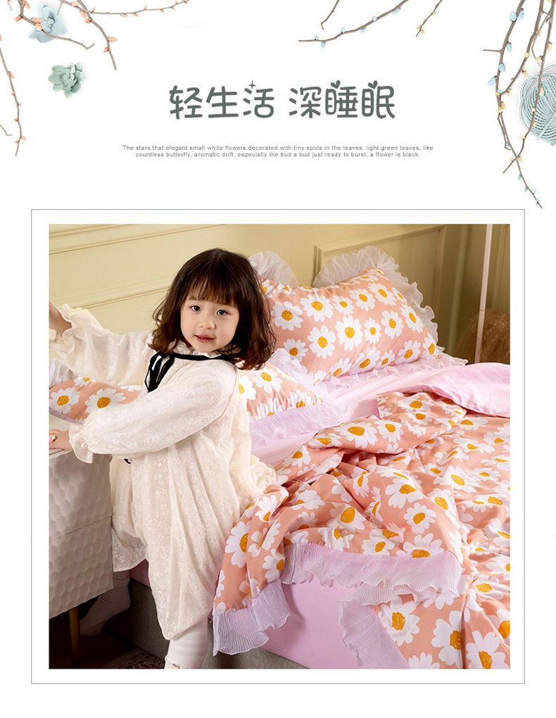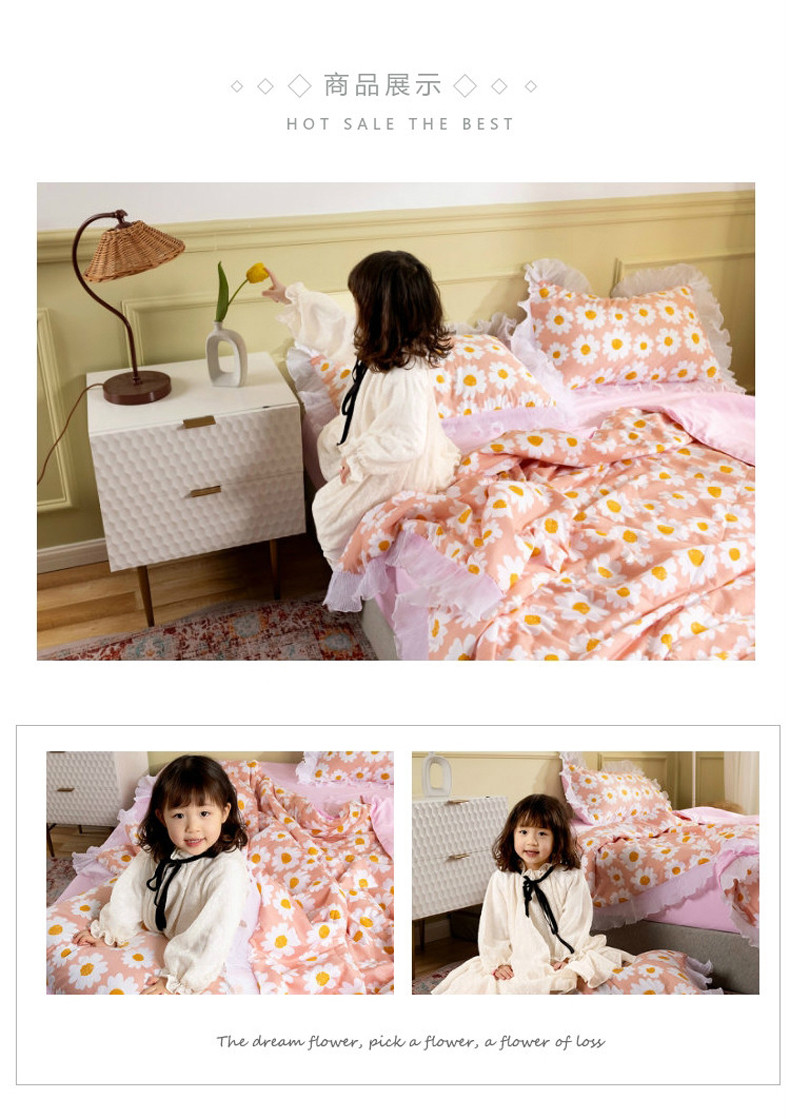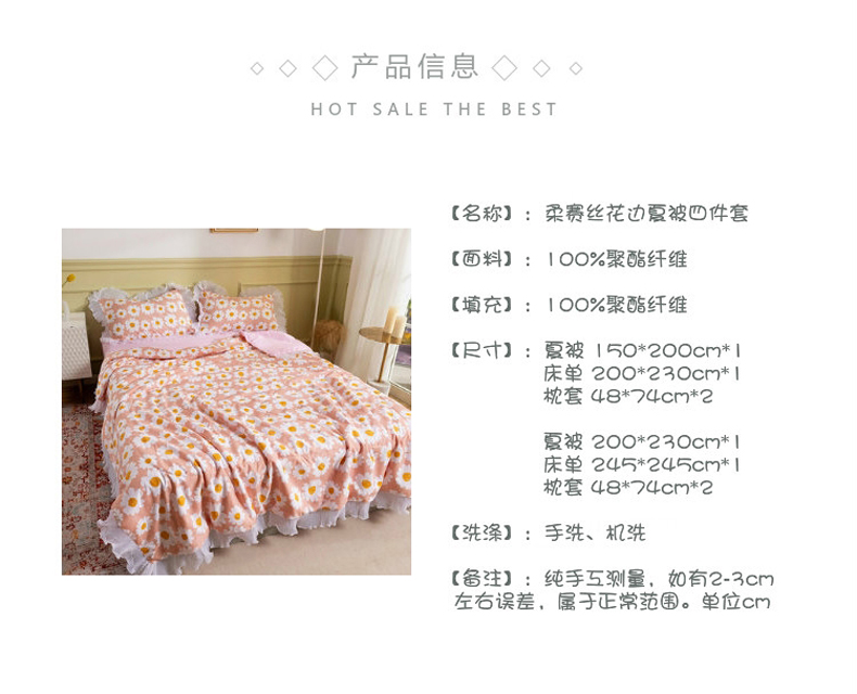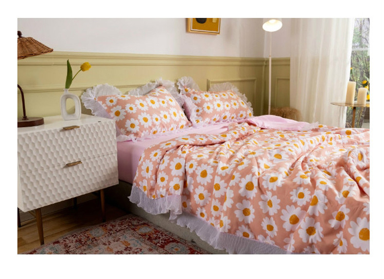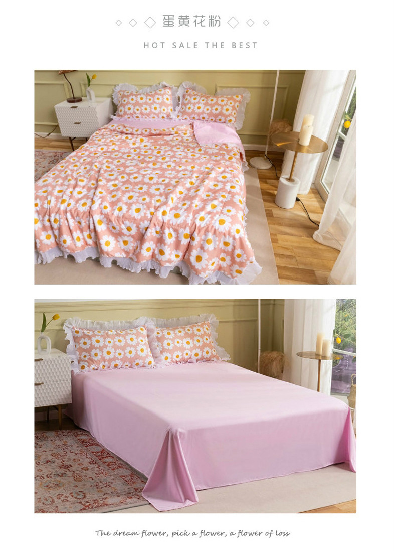 商品名称:十九色 2024新款柔赛丝雪纺花边夏被 蛋黄花粉