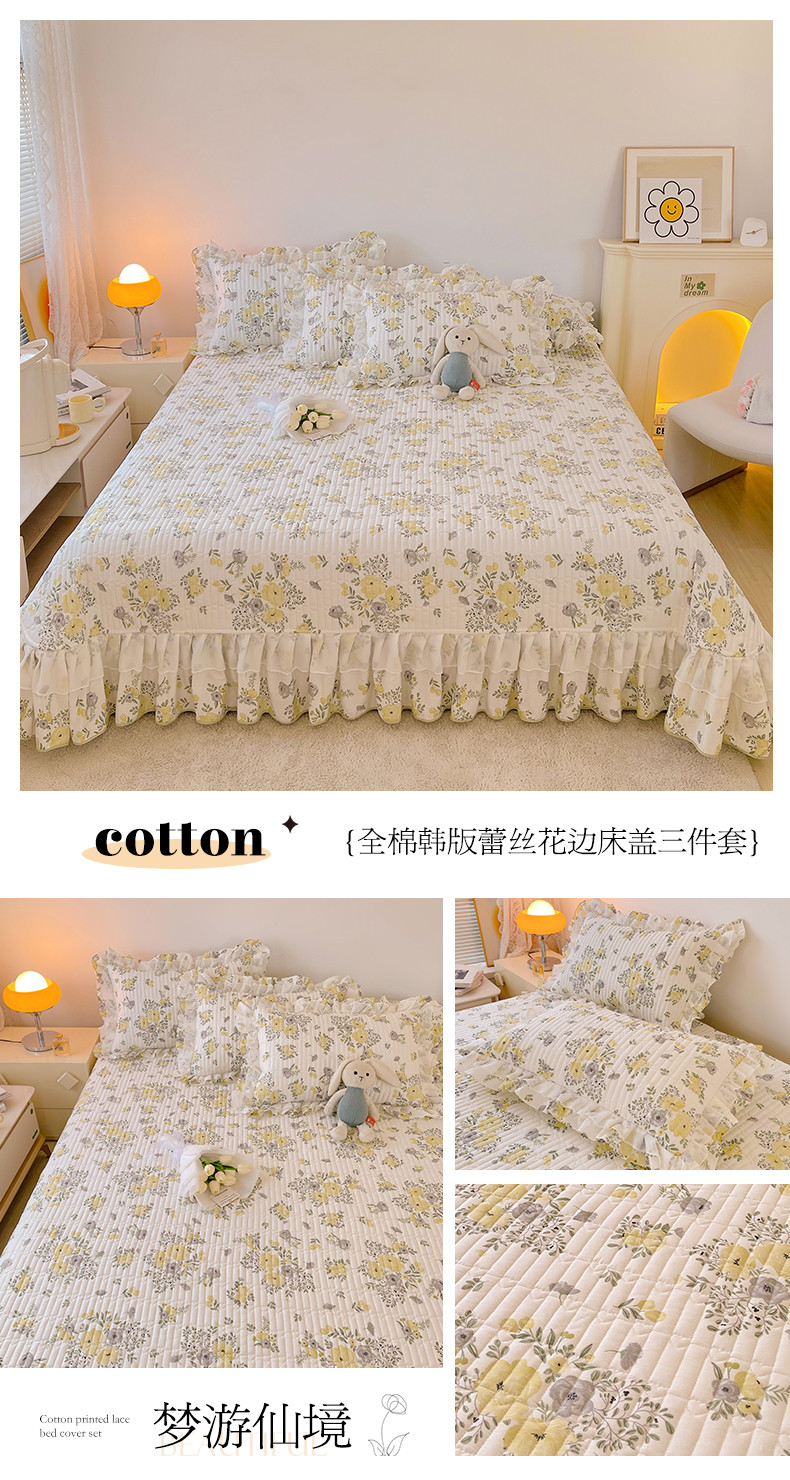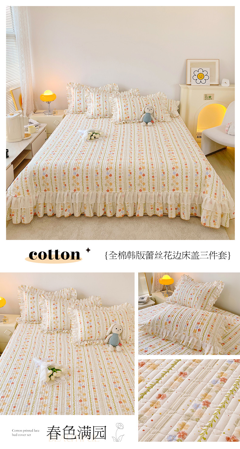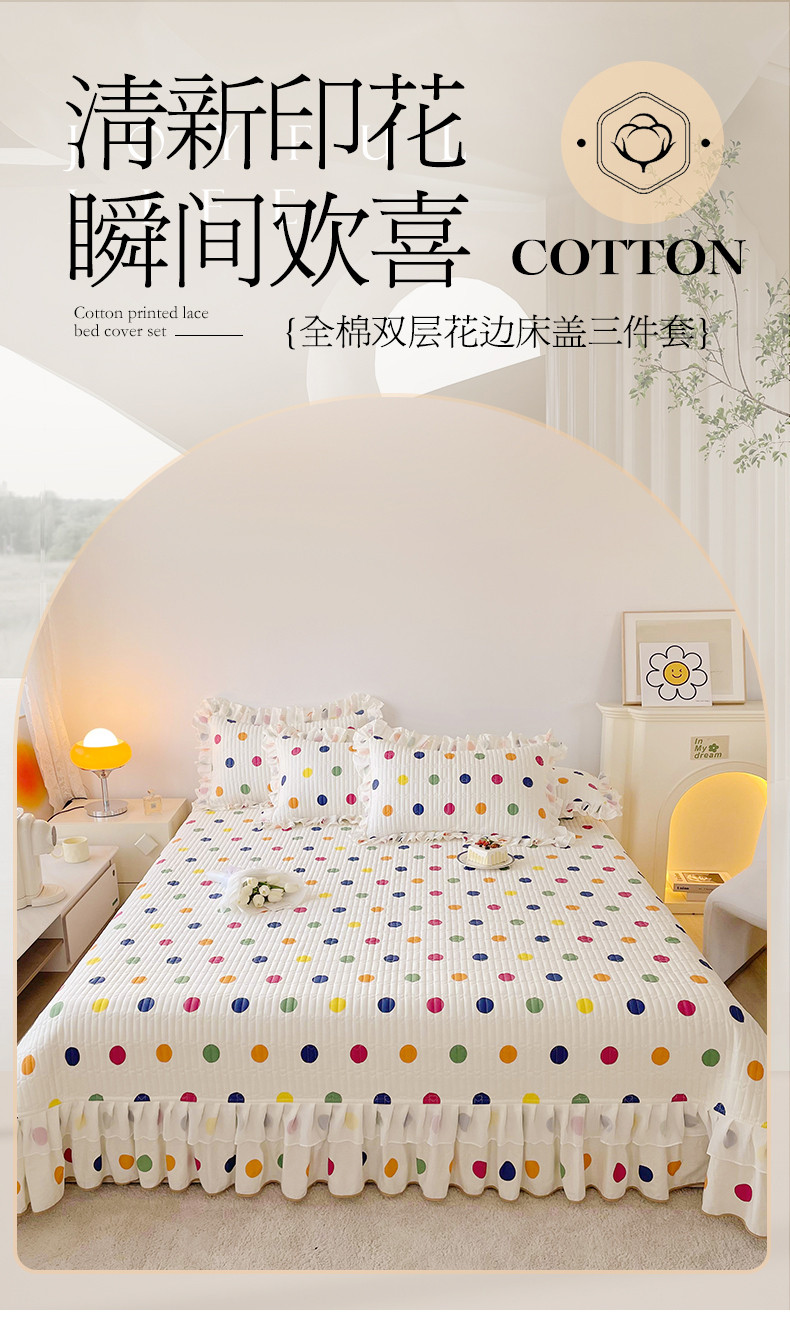 (总)宜凡 2023新款全棉双层花边床盖三件套系列