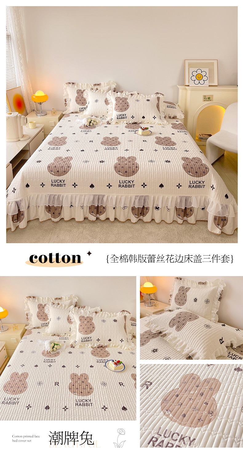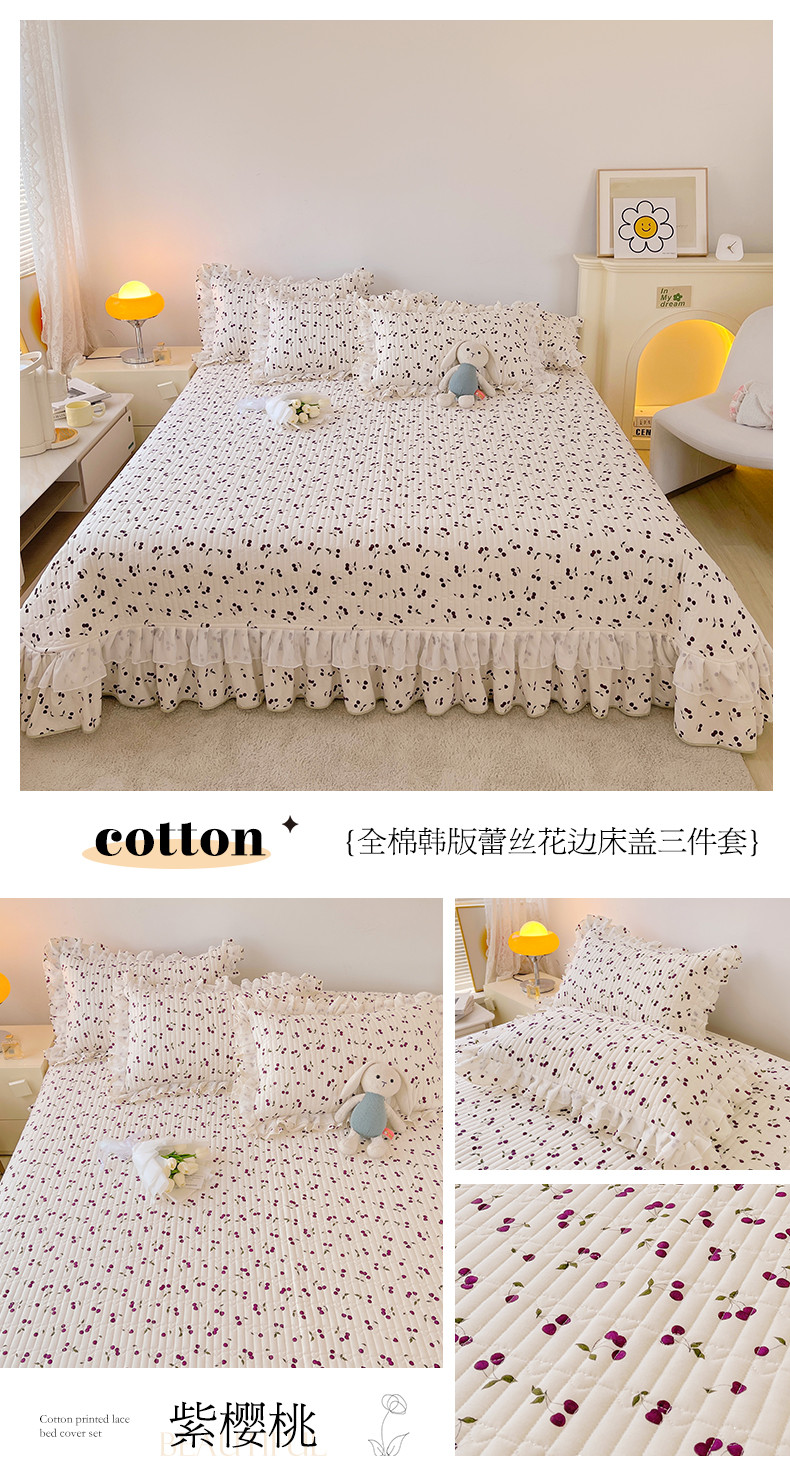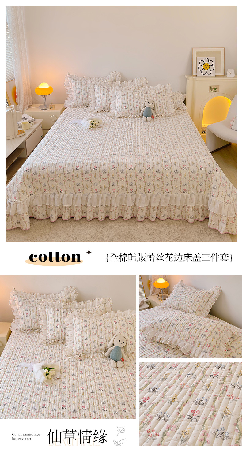 (总)宜凡 2023新款全棉双层花边床盖三件套系列