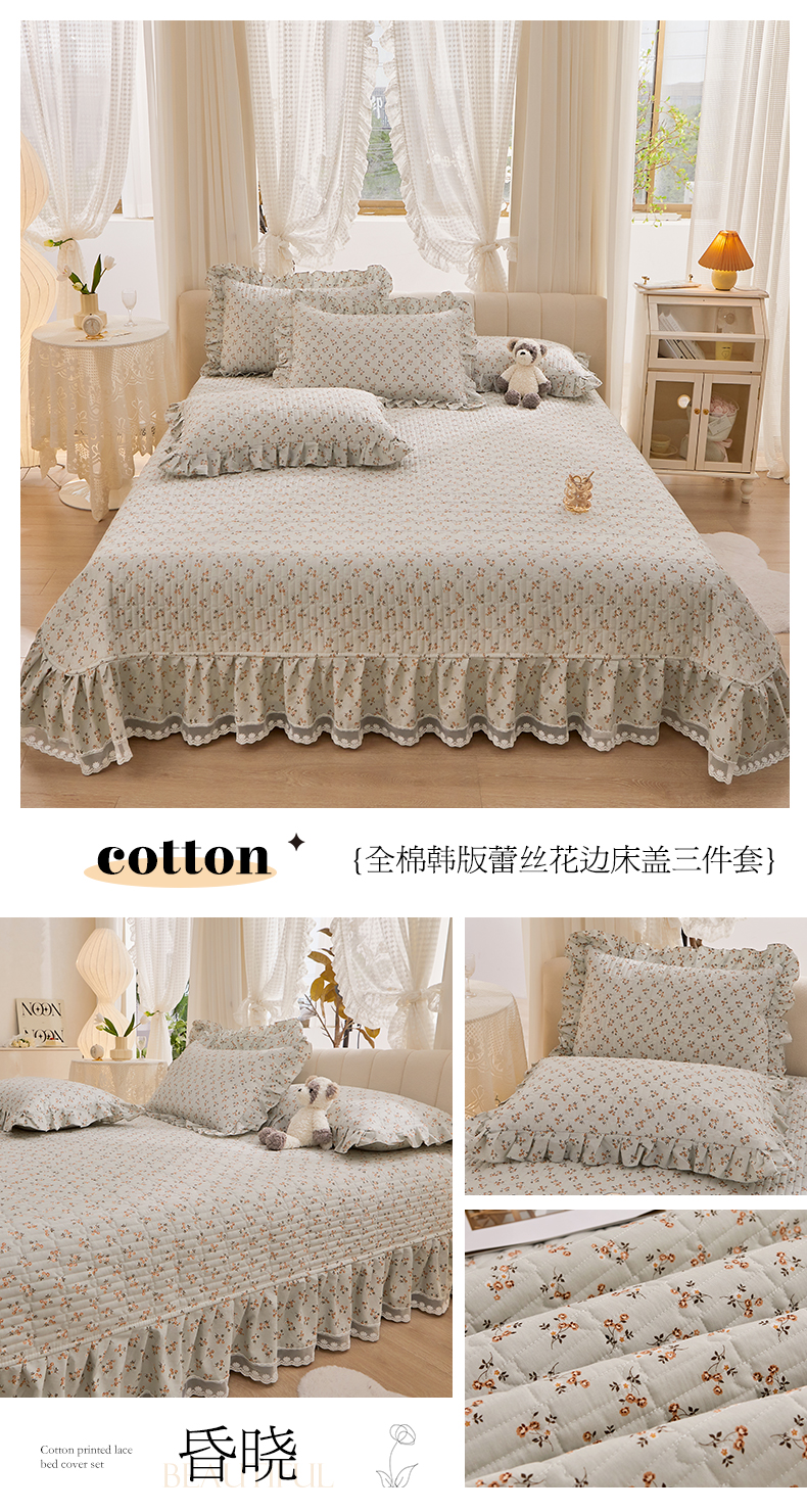 宜凡 2023新款全棉韩版蕾丝花边床盖三件套系列 昏晓