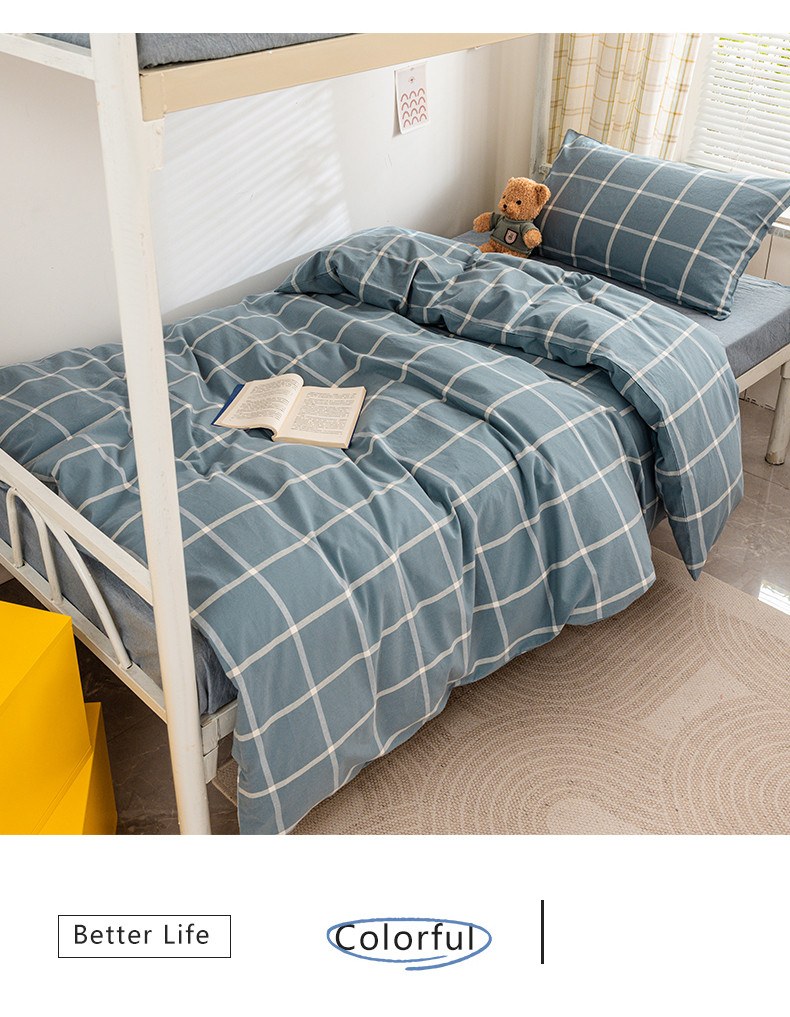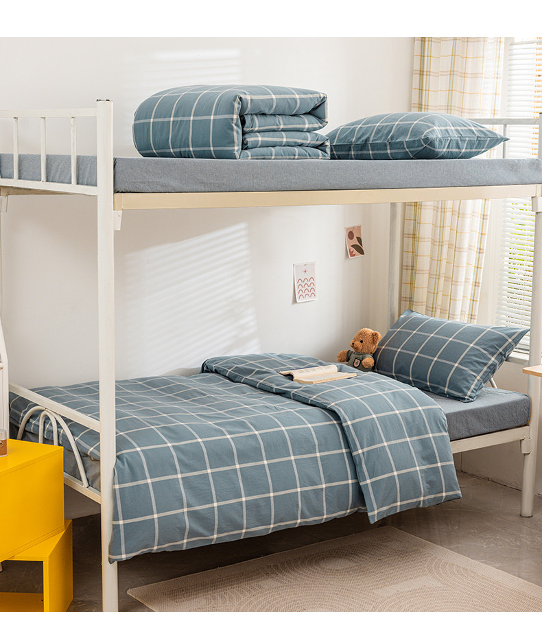 当前位置: 91家纺网 > 商品网购 > 床品套件 > 三件套 > 柠萌 2025新款A类全棉色织水洗棉学生宿舍上下铺全棉三件套 海蓝大格