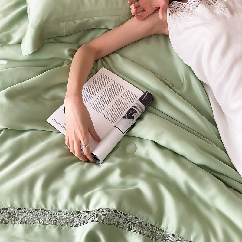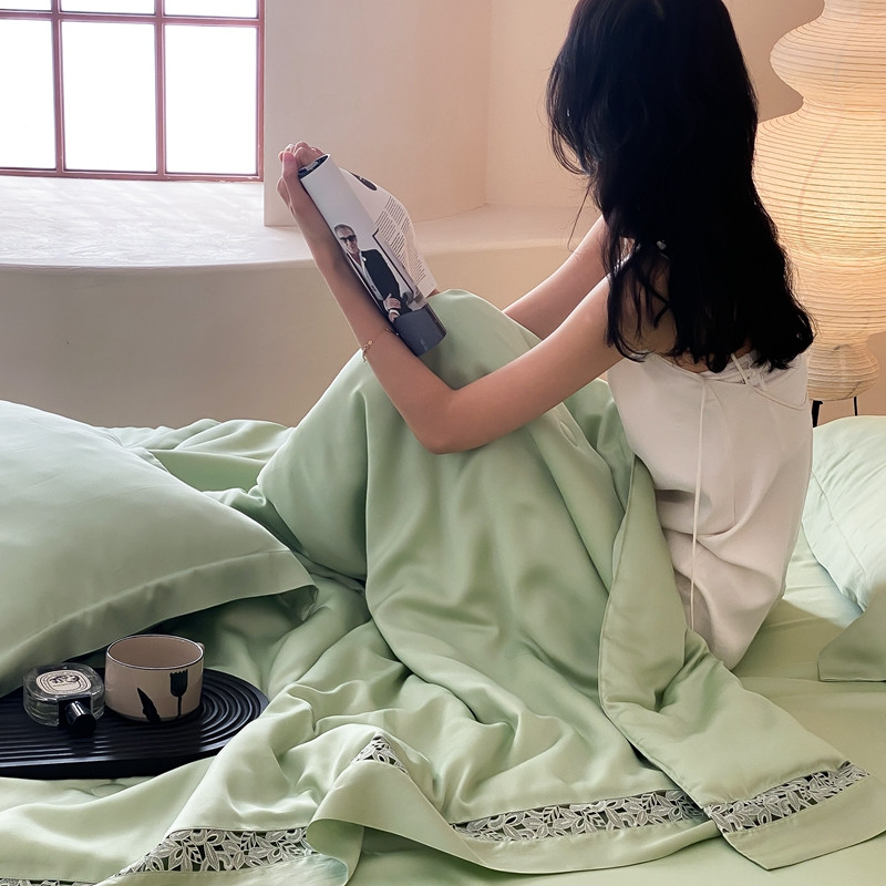 总 若未 50S进口奥地利兰精天丝复古清新美式轻法镂空夏被四件套-奥丽