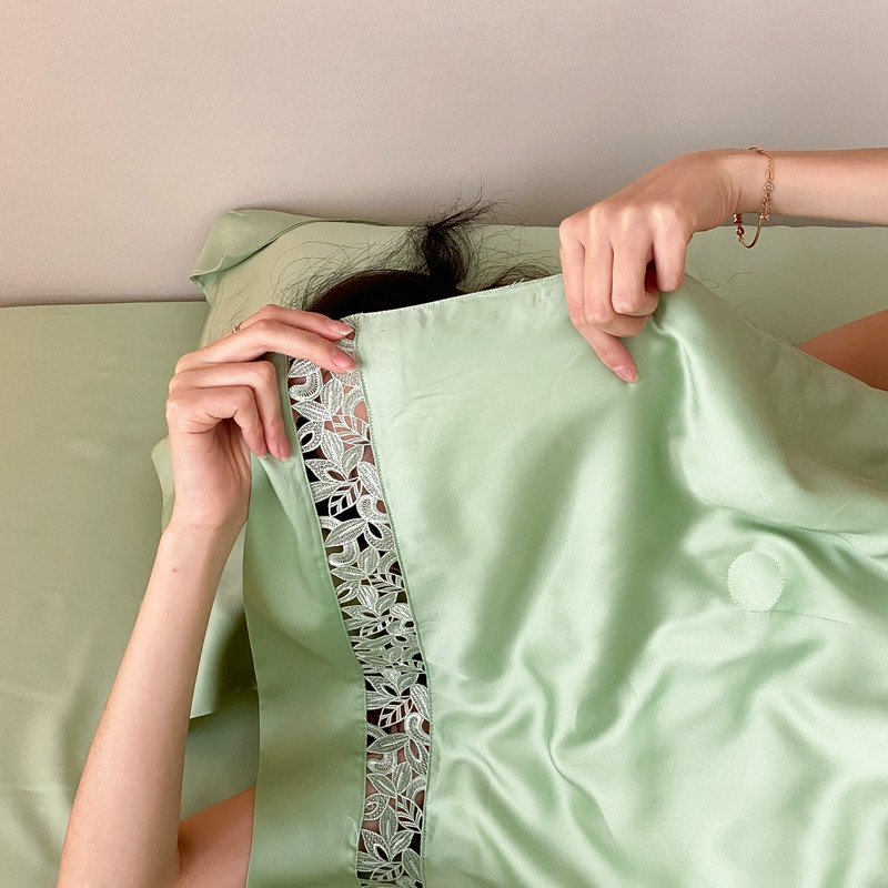 商品名称:总 若未 50S进口奥地利兰精天丝复古清新美式轻法镂空夏被四件套-奥丽