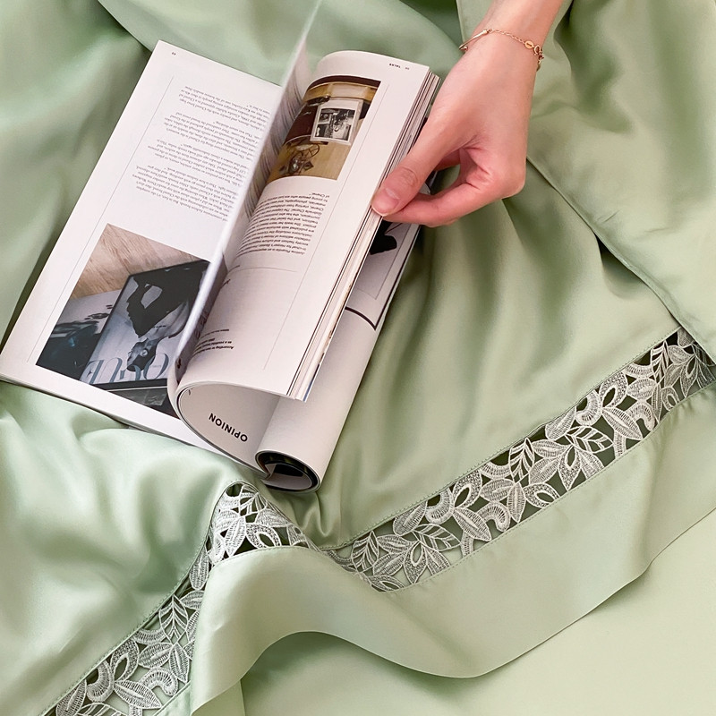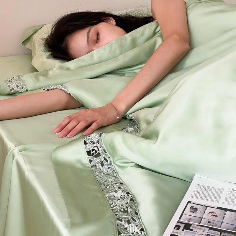 (总)若未家居 2023 新款高支高密长绒棉进口镂空款四件套 -爱法,橄榄绿,贵族红,皓月白,湖水蓝,羊脂玉