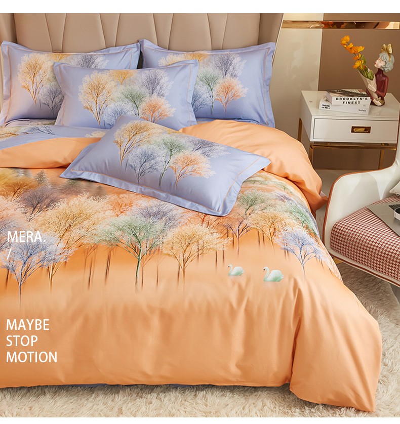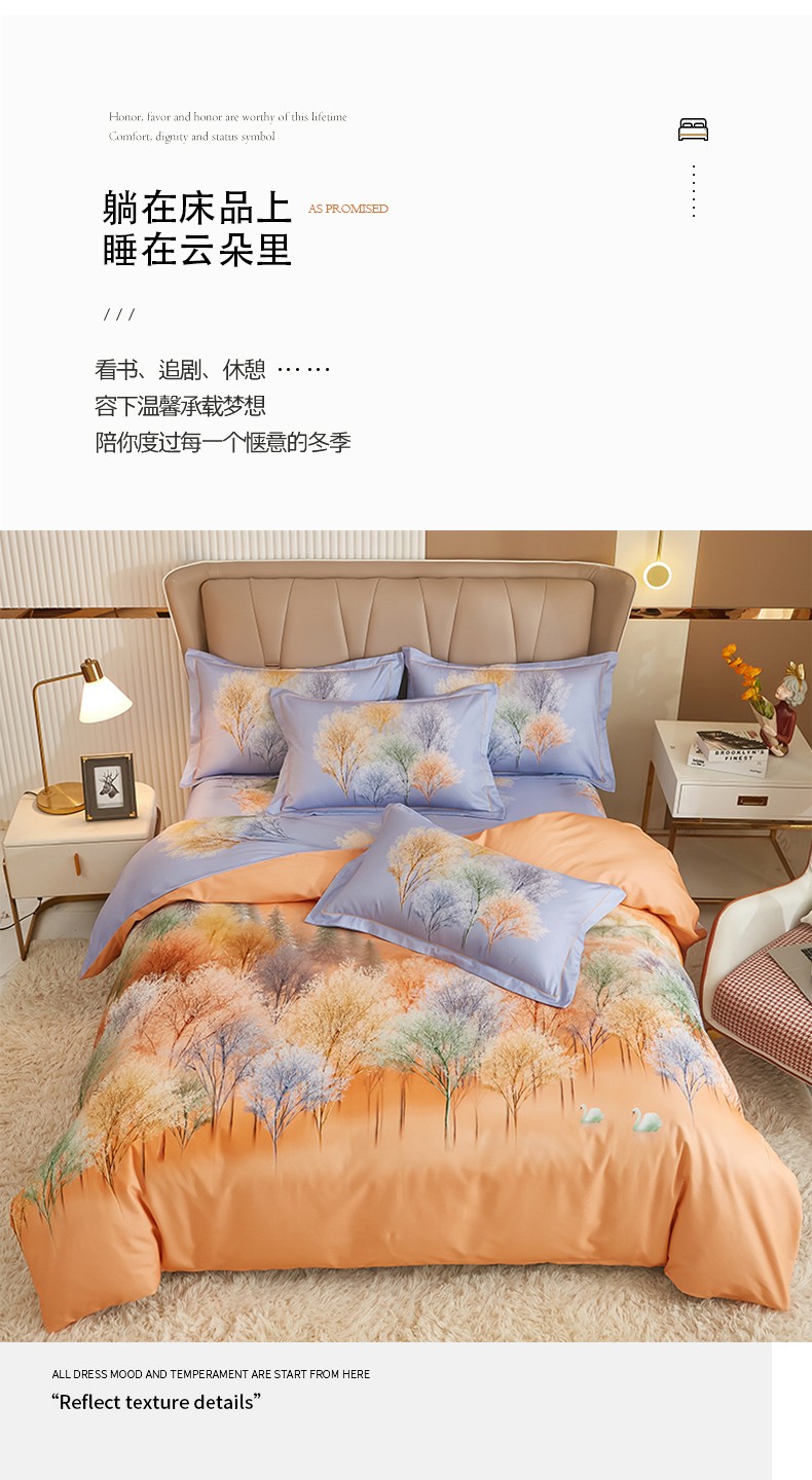 商品名称:雲归梦 2023年新款加厚全棉生态磨毛大版四件套 色彩生活-桔