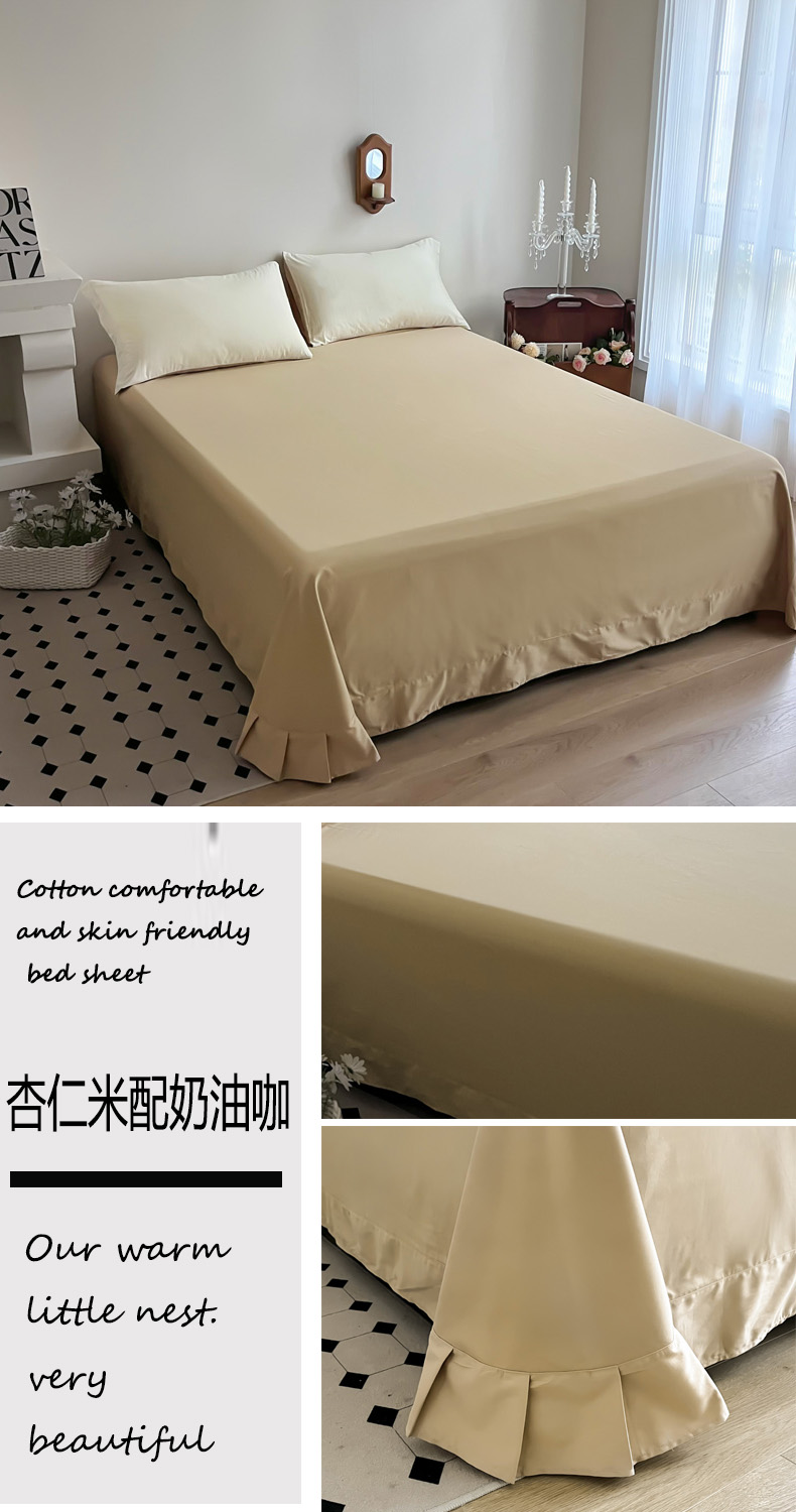 商品名称:艾迪尚家纺2025新款100s生态全棉纯色磨毛单品床单杏仁米配奶油咖