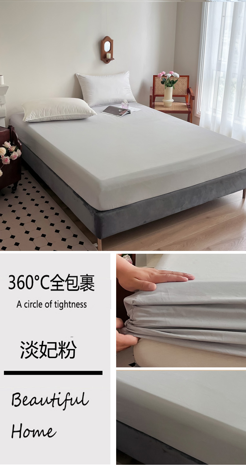 艾迪尚家纺 2025新款100s生态全棉纯色磨毛单品床笠 淡妃粉
