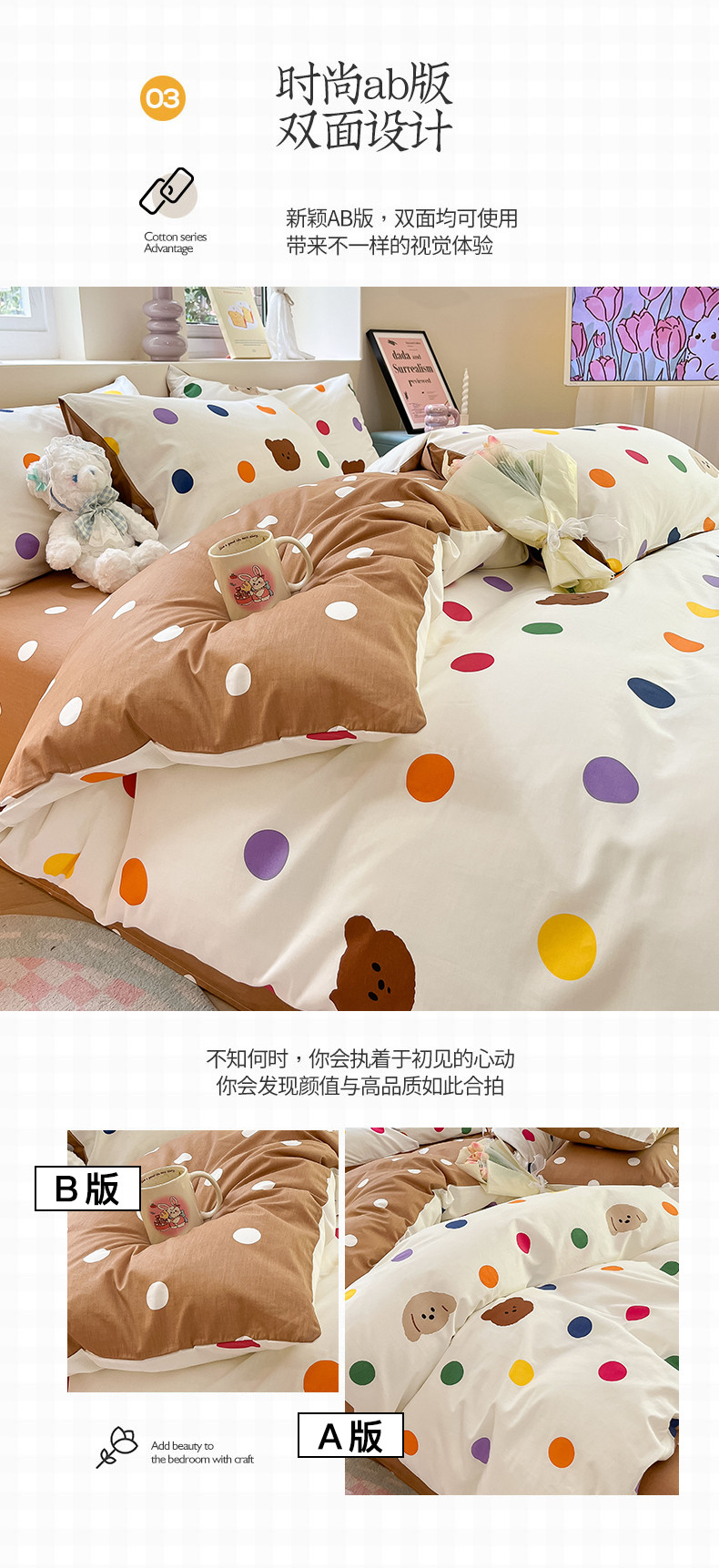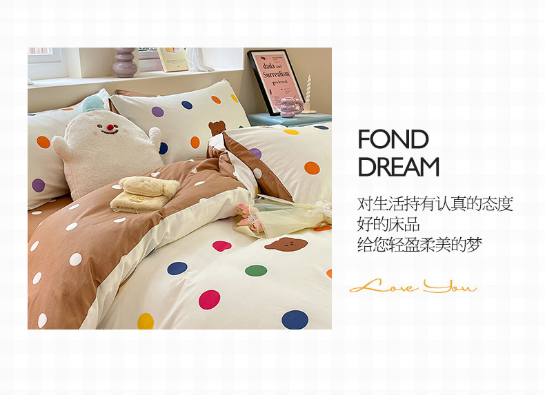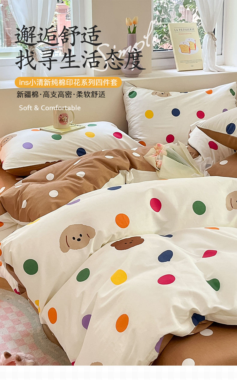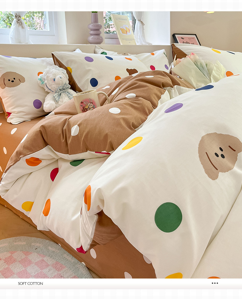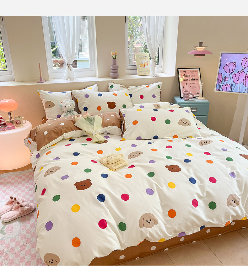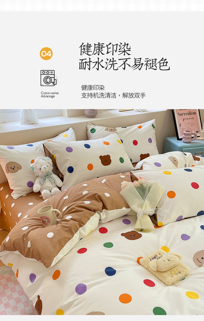 沐棉 2023新款全棉13372小清新印花四件套 波点熊